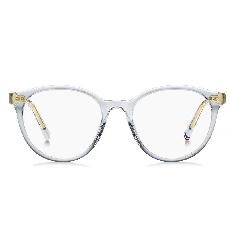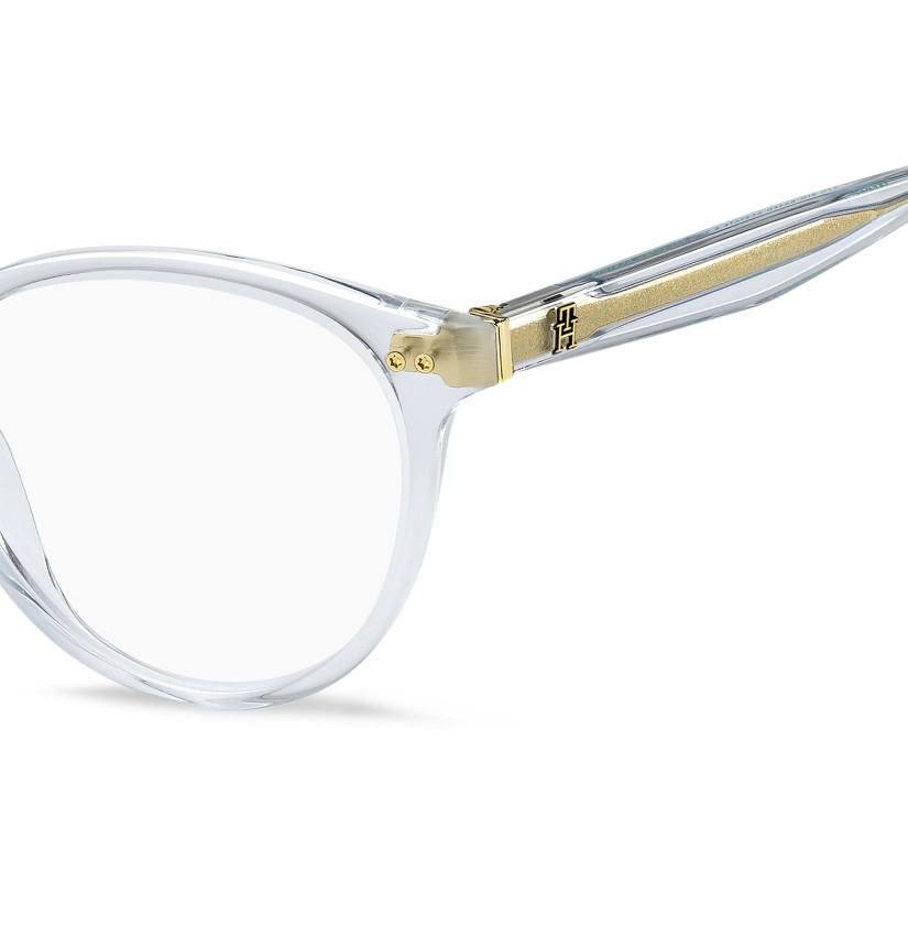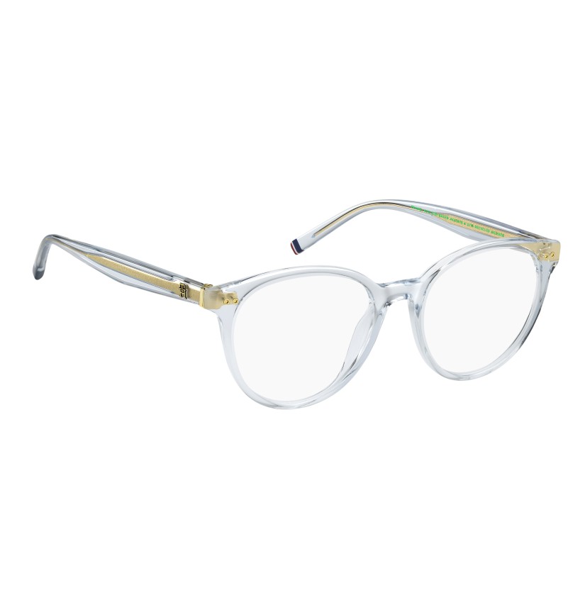 TOMMY HILFIGER combines preppy references and contemporary influences in these women’s eyeglasses. The front comes in on-trend shapes, brightened by double rivets. The exquisite raised TH monogram on the temples is joined by the brand's flag on the left end tip. The structure is more sustainable, made from bio-based acetate. These glasses come in a range of colours, each one more exquisite than the next.