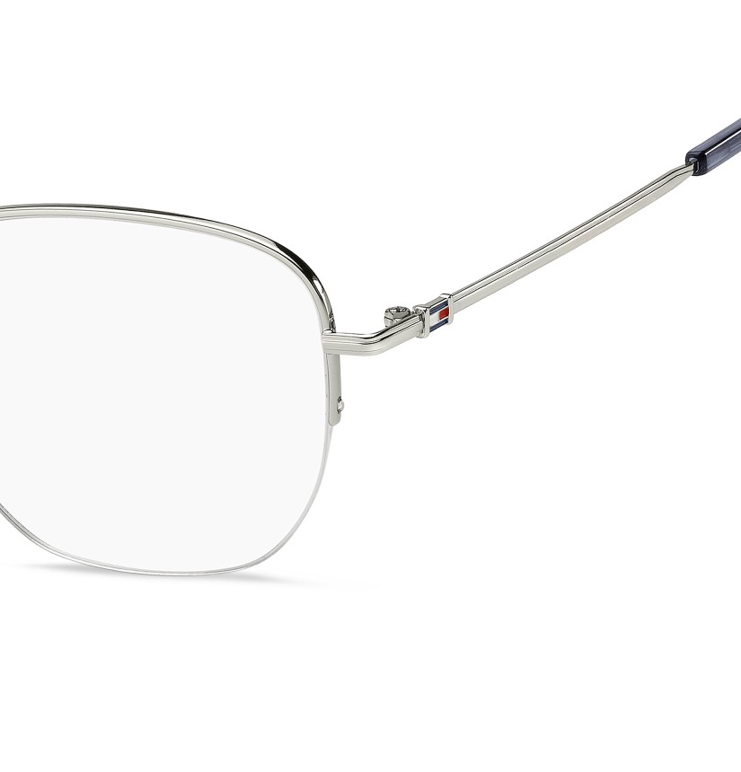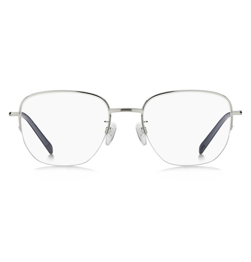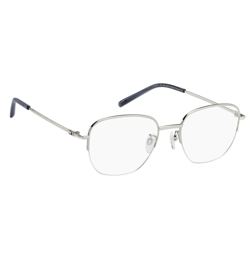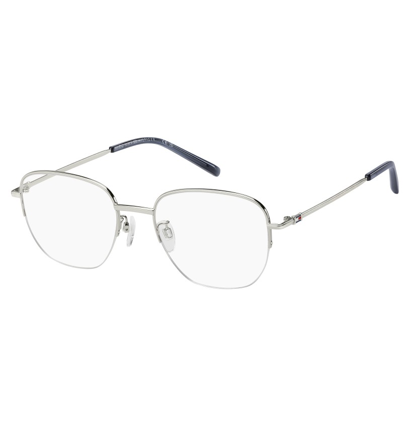 A classic silhouette and premium features define these TOMMY HILFIGER Asian fit eyeglasses. The temples crafted in beta-titanium are lightweight, flexible, hypoallergenic and durable, while the geometric front is designed in stainless steel and has adjustable nose pads for a comfortable, secure fit. The brand's flag on the outer temples adds a subtle yet instantly recognisable detail.