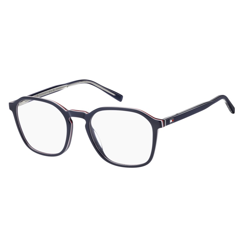 Inspired by classic American style, these TOMMY HILFIGER eyeglasses ensure a clean look. In high-density renewed acetate, their slender silhouette is easy to style and wear. The slim structure is enriched by metal hinges where the temples meet the front, a detail that’s aesthetically pleasing and increases the durability of the glasses. The brand's flag is seen on the temples and echoed in the ribbon on the end tip.