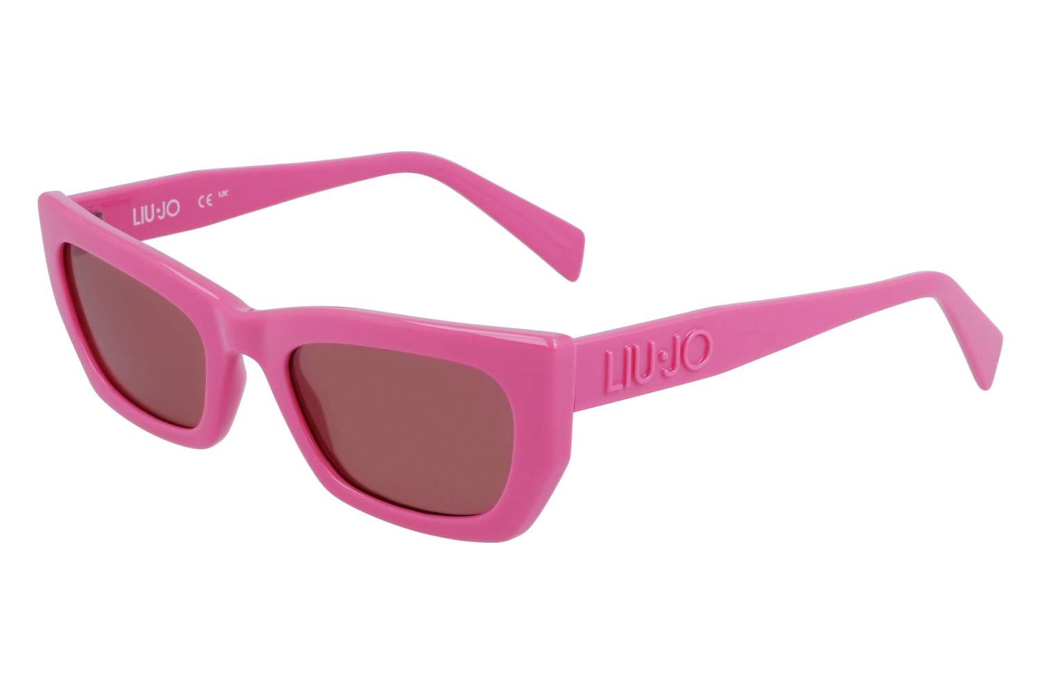 Bio-injected plastics provide a comfortable yet stylish look|A fresh and strong look is provided by the cat eye shape and the cool colors|Liu Jo debossed Maxi logo on temples with a tone-on-tone finish for a discreet look|RXable frame allows to mount prescription lenses|This style is a M