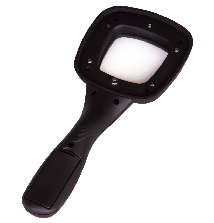 Tutti gli elementi ottici di questa lente sono realizzati in plastica. É una lente leggerissima da tenere in mano. L’immagine offerta dall’ottica è nitida, senza sfocature o aberrazioni. La lente ha angolo di inclinazione variabile. È presente una luce LED proprio a fianco della lente. La luminosità è regolabile grazie a un in interruttore sul corpo della lente. Sono necessarie delle batterie (non incluse) per l’alimentazione della luce.
