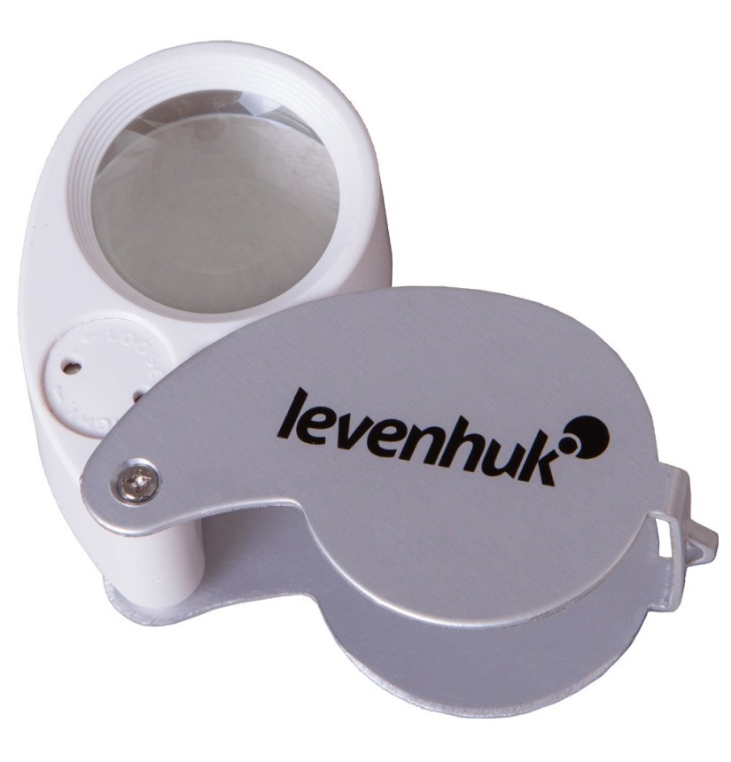 La lente ha un’illuminazione integrata: due diodi luminosi sono posti accanto alla lente e illuminano uniformemente l’area di lavoro. La costruzione pieghevole protegge la lente nei lunghi viaggi.