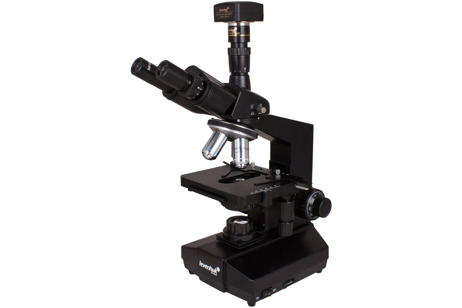 Levenhuk D870T produce ingrandimenti da 40x a 2000x e viene fornito con quattro lenti degli obiettivi: 4X, 10x, 40x e 100x – così come le coppie di oculari WF10x e WF20x con ampio FOV.