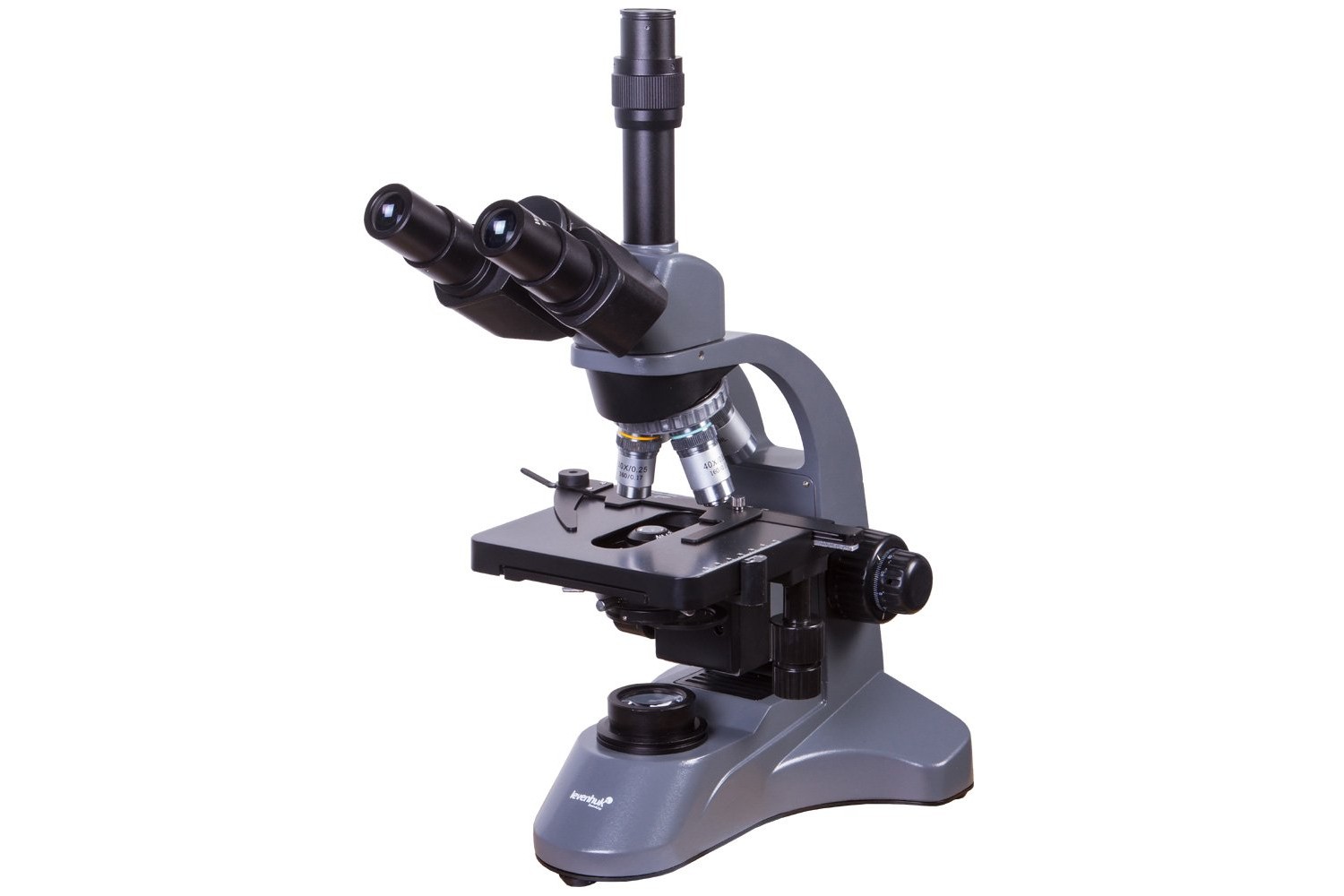 Levenhuk 740T – microscopio con testata trinoculare, permette di eseguire studi biologici con osservazioni classiche affiancate all’impiego di tecnologie moderne. La testata trinoculare consente l’installazione di una qualsiasi fotocamera digitale adatta al tubo oculare di diametro pari a 23,2 mm.