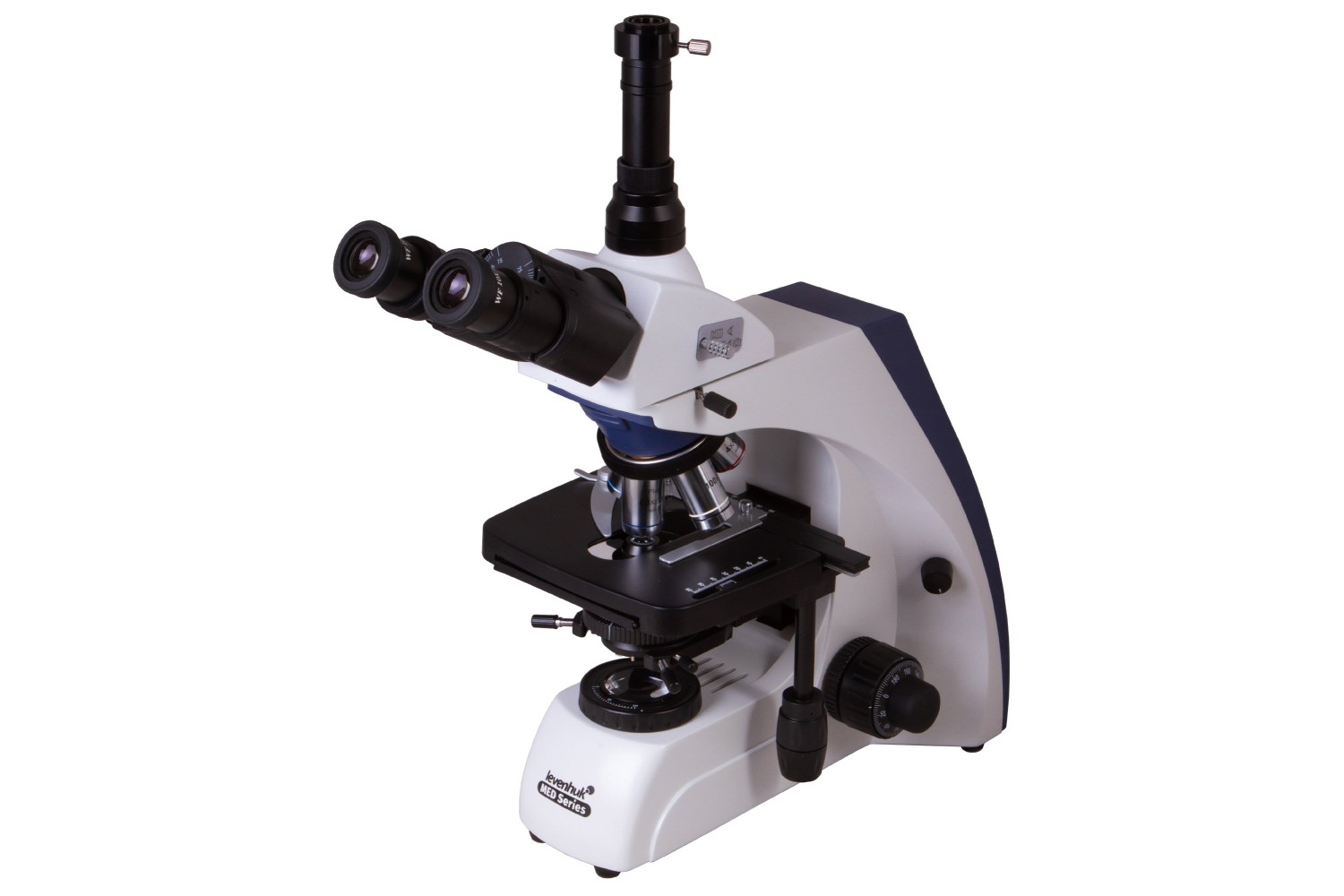 Il microscopio trinoculare Levenhuk MED 35T è uno strumento ottico professionale per condurre osservazioni del micromondo tramite il metodo a campo chiaro, con o senza immersione in olio, utilizzando luce trasmessa o illuminazione Köhler. Il microscopio è perfetto per lo studio dettagliato di piccole strutture e può essere utilizzato per studi microbiologici, biochimici e di diagnostica clinica di diversi livelli di complessità.