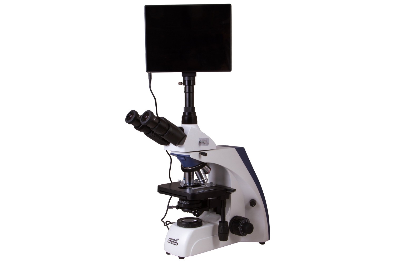 Il microscopio digitale trinoculare Levenhuk MED D35T, con schermo LCD, è ideato per investigazioni professionali del micromondo nel campo medico, biochimico, di biologia classica e altri campi scientifici. È perfetto per un laboratorio di diagnostica clinica o per un dipartimento universitario. Il microscopio è dotato di una fotocamera digitale con uno schermo LCD, consente di impostare l’illuminazione Köhler e supporta l’immersione in olio. Il microscopio usa lenti planacromatiche, che consentono l’osservazione a ingrandimenti da 40x a 1000x.