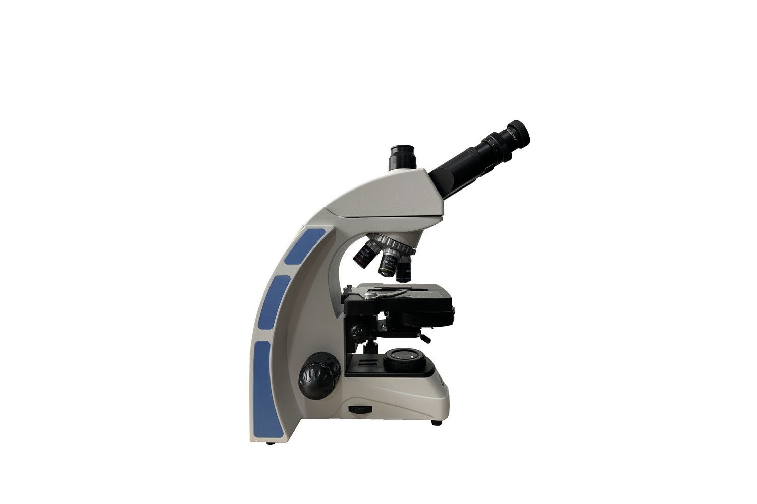 Il kit comprende oculari da 10x ad ampio campo. Puoi regolare le diottrie per adattare il sistema ottico alla tua vista. È disponibile una regolazione di nitidezza sia grossolana che fine. Il portaobiettivo girevole può alloggiare cinque obiettivi; tuttavia, il kit comprende solo quattro. Sono obiettivi planacromatici per contrasto di fase che riducono la distorsione ottica e migliorano il colore e il contrasto delle immagini. Le lenti degli obiettivi da 40x e 100x hanno montature a molla. Un obiettivo da 100x può servire per l’immersione in olio. Tutte le ottiche sono in vetro speciale con rivestimento antimicotico.