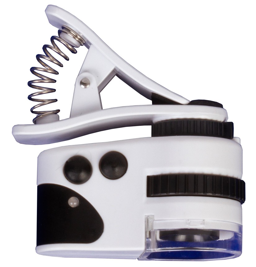 - Microscopio tascabile con una levetta per il fissaggio a un dispositivo mobile