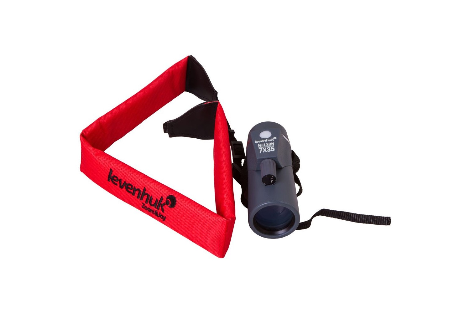 Consigliamo di usare questo monocolo con la tracolla galleggiante Levenhuk FS10 quando si è vicini all’acqua, in quanto questo accessorio dai colori vivaci impedirà allo strumento ottico di affondare ed essere perso.