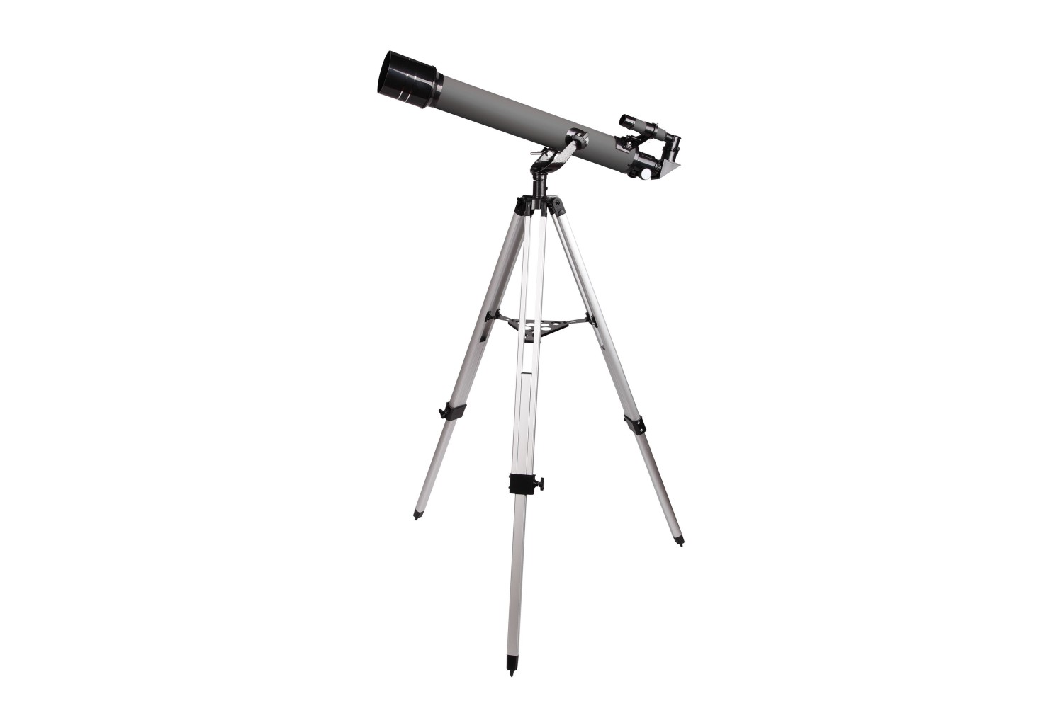 Questo telescopio si basa sullo schema ottico di un rifrattore acromatico. Le sue lenti sono realizzate in vetro. Le ottiche sono ricoperte con un trattamento antiriflesso, il che rende l’immagine riprodotta chiara e nitida nell’intero campo visivo. La montatura azimutale a forcella è dotata di una vite micrometrica sull’asse verticale, che consente di orientare con accuratezza il telescopio nella direzione dell’oggetto scelto. Il treppiede in alluminio è dotato di vassoio per accessori. L’altezza del treppiede è regolabile.