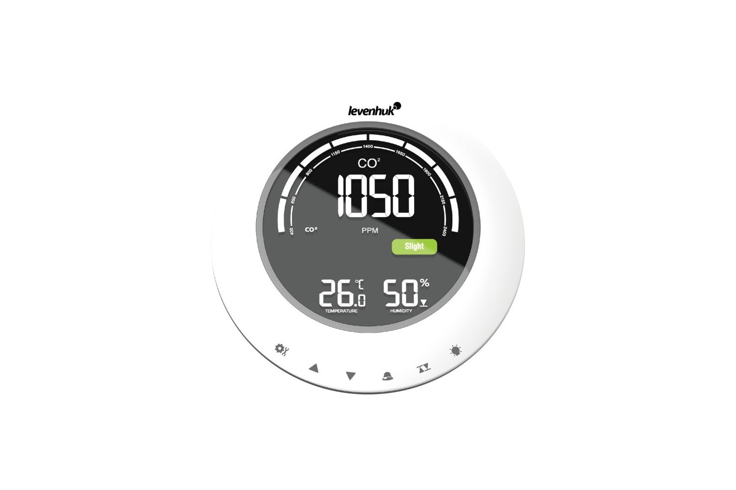 Levenhuk Wezzer PLUS LP90 è un compatto rilevatore di CO₂ capace anche di misurare la temperatura e l’umidità. Questo piccolo dispositivo avvisa se i livelli di umidità e CO₂ sono considerati troppo alti o bassi, il che diminuisce il comfort in caso di permanenza negli spazi interni interessati. Se la concentrazione di biossido di carbonio supera quella raccomandata per una stanza ventilata, questo gadget avvisa che è il momento di aerare la stanza. Sono presenti degli indicatori digitali sullo schermo LCD a colori e sono disponibili anche degli avvisi sonori. Se lo si preferisce, il cicalino può essere spento.
