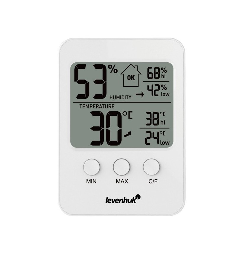 Il termoigrometro Levenhuk Wezzer BASE L30 è un pratico strumento digitale che si rivelerà utile per qualsiasi abitazione. Non si limita a misurare la temperatura di una stanza e l’umidità dell’aria, ma mostra anche l’andamento della variazione dei parametri meteorologici. Con uno strumento simile, sarà semplice essere sempre informati sui parametri base del microclima e si potranno facilmente monitorare le loro variazioni. Ciò aiuterà a prevenire la formazione di muffe a causa dell’umidità troppo elevata o, viceversa, a porre rimedio in caso di aria troppo secca.