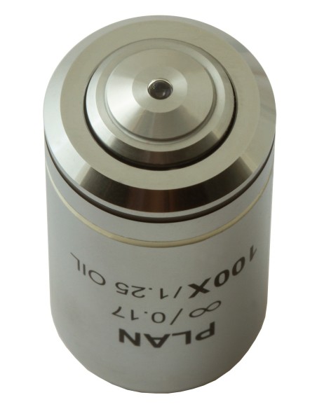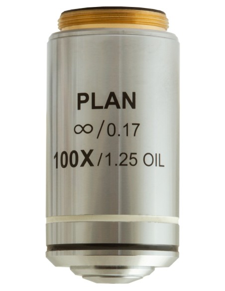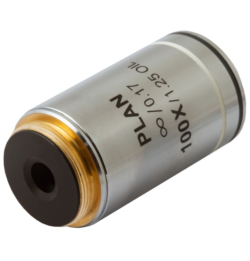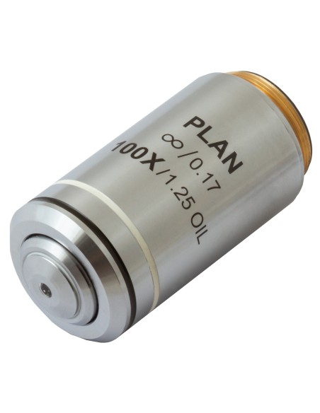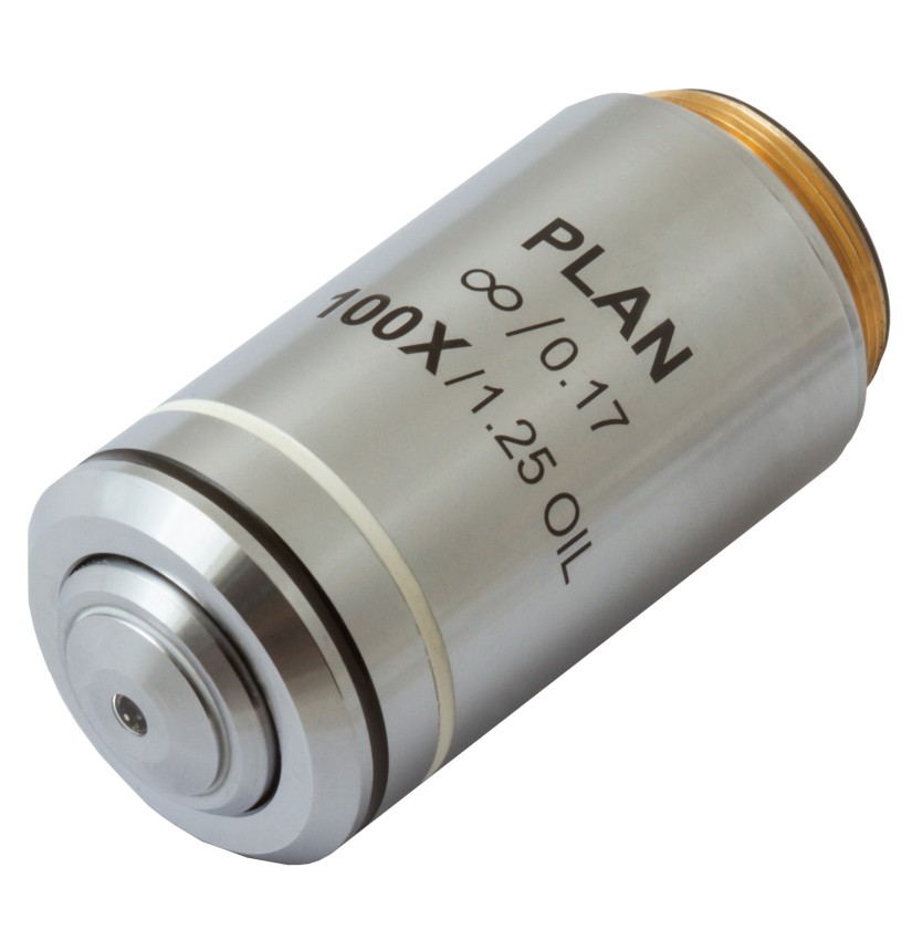 L’obiettivo planacromatico all’infinito Levenhuk MED 100x è un accessorio pensato per microscopi da laboratorio. È progettato per sistemi ottici corretto all’infinito e consente di effettuare ricerche ad alta precisione ed elevato ingrandimento. Offre un ingrandimento di 100x. Le ottiche planacromatiche correggono perfettamente la curvatura di campo appiattendo il campo visivo. Consente di trasmettere immagini nitide e di qualità senza aberrazioni sferiche o cromatiche. È possibile utilizzare l’obiettivo per le classiche osservazioni “a secco”. In aggiunta, consente di effettuare osservazioni con immersione in olio.