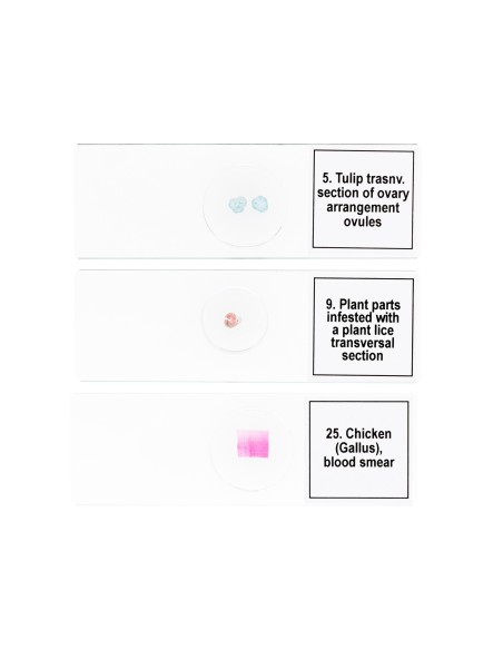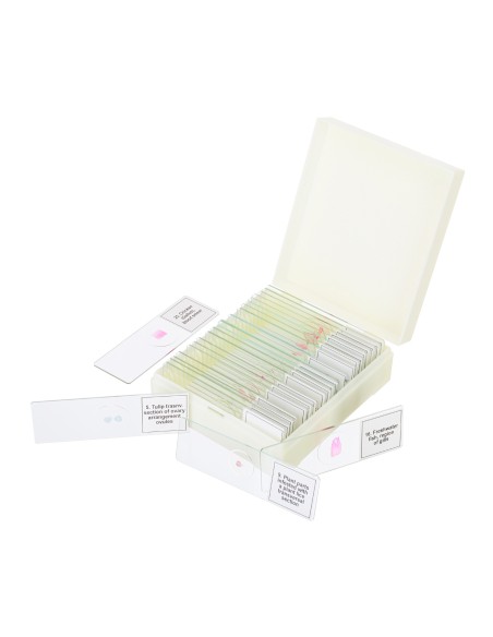Il vetro ottico di elevata qualità è progettato per la ricerca avanzata: studio delle scienze mediche, zoologia, microbiologia, medicina veterinaria, ecc. Resistenti e ad alta trasparenza, le immagini ingrandite risultano talmente chiare da essere utilizzate come un eccellente materiale didattico per molti anni a venire. Le strutture e i cambiamenti nei vari tessuti possono essere studiati in dettaglio, il che rende questo set particolarmente prezioso per i futuri professionisti.