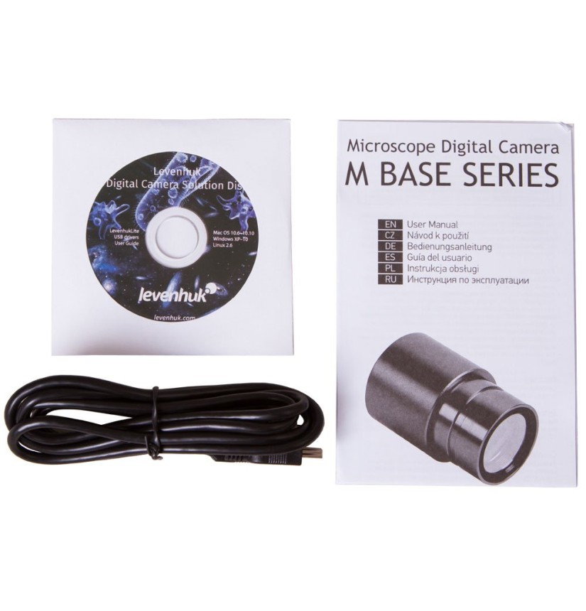 La fotocamera ha un diametro standard di 23,2 mm, per cui potete installarla su qualsiasi microscopio moderno. Per usarla con tubi oculari di altri diametri, basterà acquistare un adattatore. Un cavo USB standard (incluso) è usato per collegare la fotocamera al computer. La fotocamera è inoltre controllata usando lo speciale software Levenhuk (incluso), che consente di cambiare le modalità di fotografie e video, tagliare i fotogrammi e regolare la luminosità e il contrasto dell’immagine.
