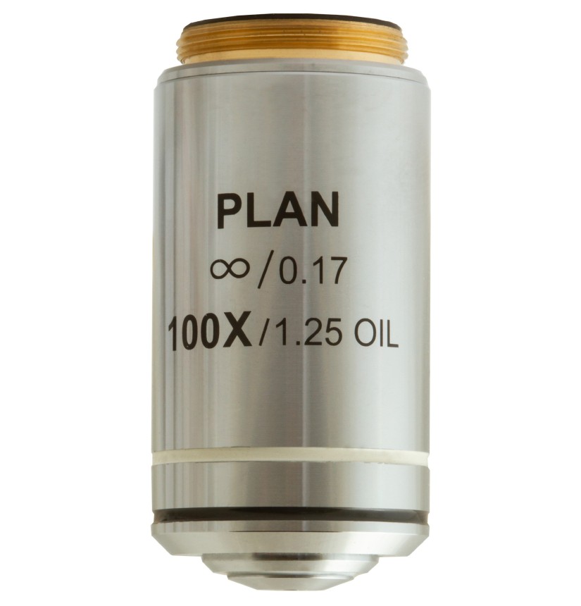 L’obiettivo planacromatico all’infinito Levenhuk MED 100x è un accessorio pensato per microscopi da laboratorio. È progettato per sistemi ottici corretto all’infinito e consente di effettuare ricerche ad alta precisione ed elevato ingrandimento. Offre un ingrandimento di 100x. Le ottiche planacromatiche correggono perfettamente la curvatura di campo appiattendo il campo visivo. Consente di trasmettere immagini nitide e di qualità senza aberrazioni sferiche o cromatiche. È possibile utilizzare l’obiettivo per le classiche osservazioni “a secco”. In aggiunta, consente di effettuare osservazioni con immersione in olio.