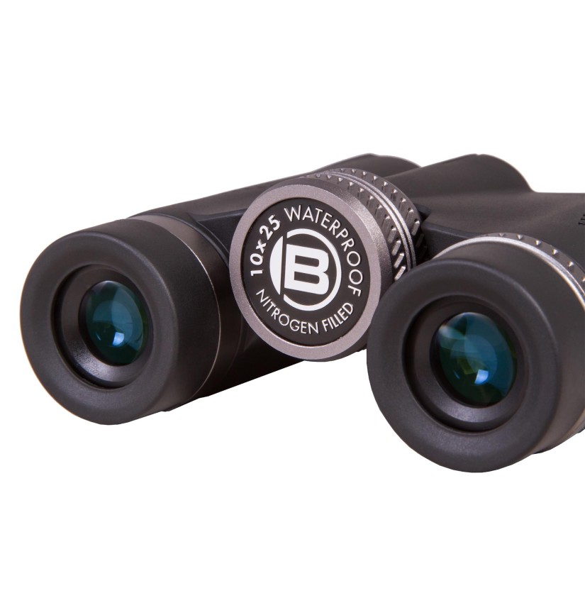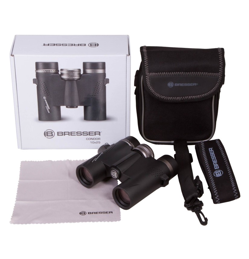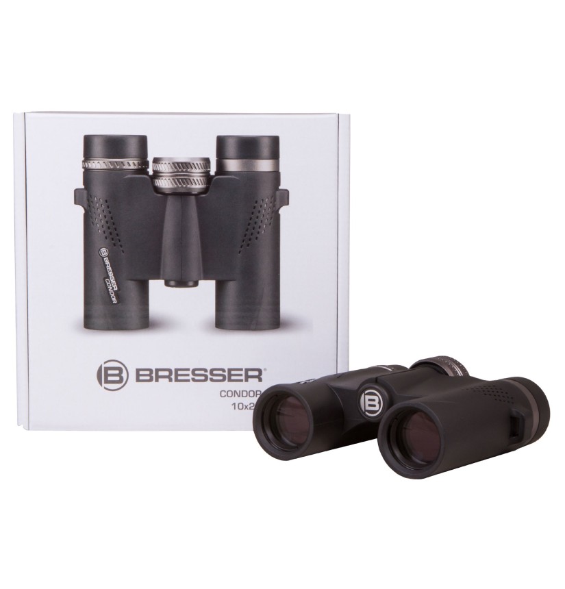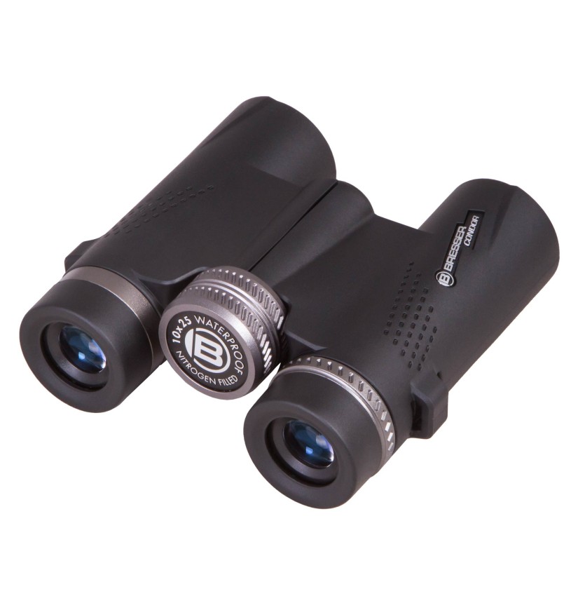 I modelli Condor 8x25 & 10x25 di Bresser sono binocoli estremamente leggeri che grazie all’ impermeabilità e al riempimento con gas inerte sono perfetti per camminate e per osservazioni naturalistiche spontanee. Grazie alle conchiglie oculari girevoli e regolabili è possibile adattare gradualmente la distanza interpupillare per l’osservazione con e senza occhiali. Una correzione diottrica è disponibile di serie. Questi modelli sono dotati di prismi BaK-4 con lo speciale trattamento antiriflesso UR che trasporta ancora più luce nell’occhio. In più, tutti i binocoli Condor hanno un trattamento multistrato antiriflesso completo per una migliore trasmissione della luce. L’oculare e la rotella per la regolazione del fuoco sono in metallo robusto.