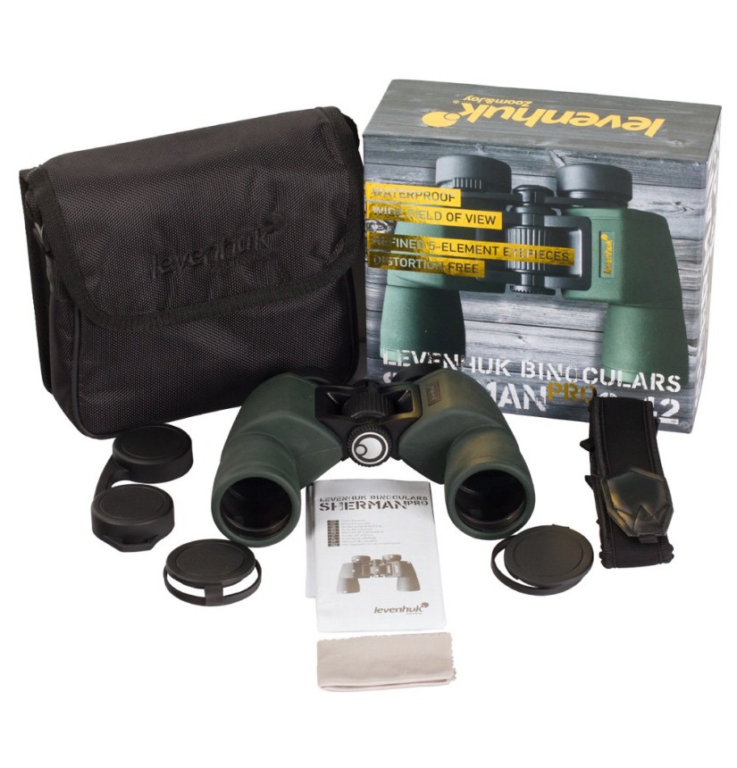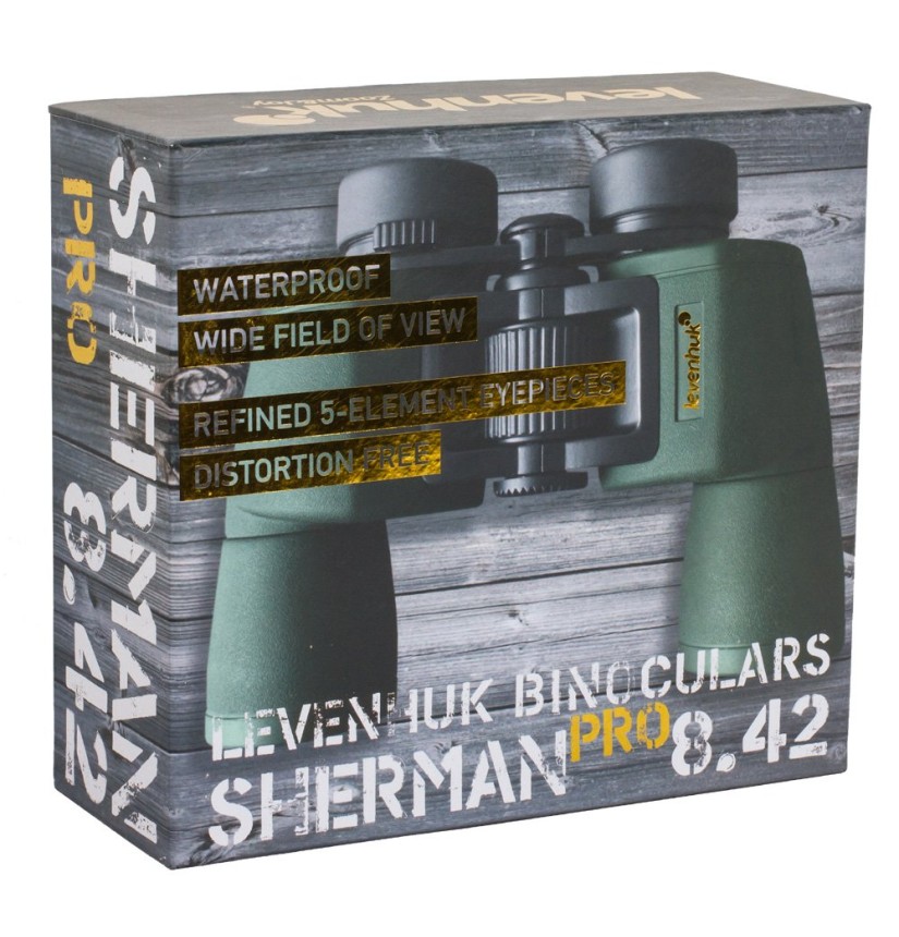 Le lenti di questo modello sono realizzate in vetro BaK-4 di alta qualità. Il design ottico si basa sui prismi di Posso, che forniscono un ampio campo visivo. Il binocolo è dotato di obiettivi a due lenti e oculari a cinque lenti. Tale costruzione consente un campo visivo piatto, evitando la distorsione delle immagine non solo al centro, ma anche ai lati. Per aumentare ulteriormente la trasmissione della luce, le lenti hanno subito un trattamento FMC. Per proteggere le lenti dall’appannamento, il corpo è riempito di azoto. Il binocolo Levenhuk Sherman PRO 8x42 produce immagini chiare, nitide e definite, con una resa cromatica impeccabile.