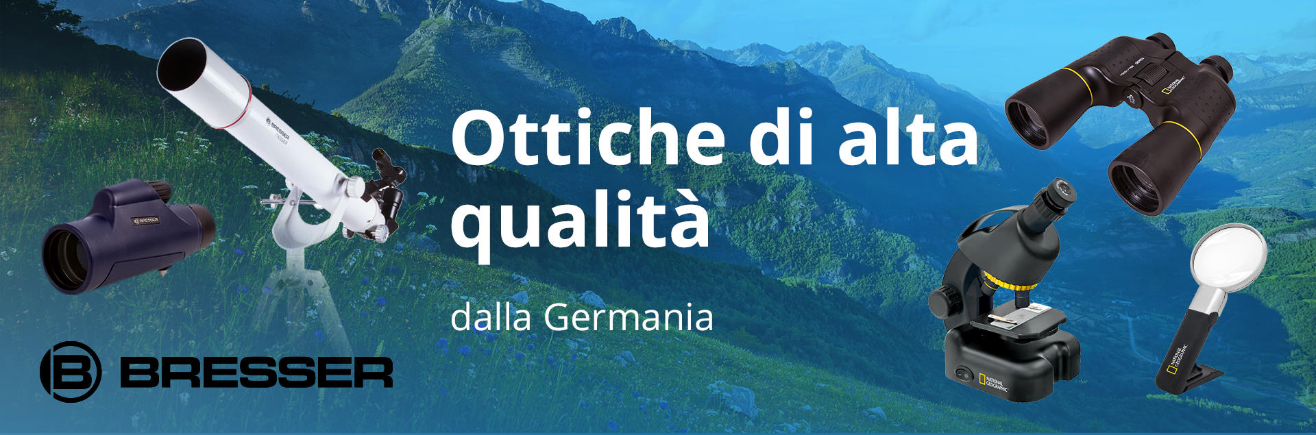 Gli strumenti ottici ed elettronici di questa serie sono stati ideati sulla base di una collaborazione tra le organizzazioni National Geographic per la scienza e l’istruzione e Bresser, un produttore tedesco di strumenti ottici. Bresser è stato scelto per questa collaborazione per l’elevata qualità dei suoi prodotti, per la notorietà del marchio e per la sua popolarità sul mercato delle ottiche. Questa linea di prodotti non comprende soltanto strumenti ottici come telescopi e binocoli, ma anche stazioni meteo, radio, batterie, lenti d’ingrandimento e altro ancora.