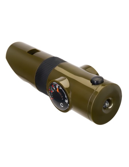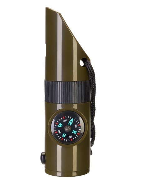 Funzionalità fischietto, termometro, bussola, specchio, lente d’ingrandimento, torcia elettrica