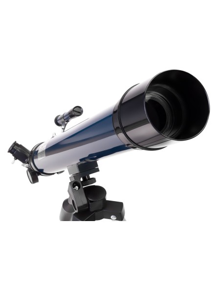 Il telescopio compreso nel kit è un rifrattore con montatura AZ. Consente di osservare la Luna, gli oggetti più luminosi del cielo notturno e i panorami terrestri. Dato che il telescopio è montato su un treppiede di dimensioni standard, può essere facilmente regolato per adattarsi all’altezza dell’utente. Adoperare lo strumento non è affatto difficile. Il telescopio può essere ruotato e mosso verso l’alto e il basso, a destra e a sinistra proprio come un cannocchiale terrestre. Per una maggiore comodità d’uso, la montatura è dotata di una pratica manopola di regolazione della messa a fuoco. Il telescopio è inoltre completato da cercatore ottico, oculari e un diagonale a specchio. Il libro educativo “Spazio. Vuoto non-vuoto” offre un metodo veloce ed efficace per imparare nuove cose sull’astronomia. Questa coloratissima guida è scritta in un linguaggio facile da capire, senza termini complessi. Descrive il funzionamento del telescopio e spiega come prepararsi per osservare degli oggetti interessanti nel cielo notturno. Il volume descrive il Sole, i pianeti del Sistema Solare e il loro satelliti, le comete, le meteore e le stelle lontane.