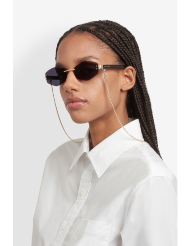 Evolving the iconic MARC 496/S style, these new Marc Jacobs women's sunglasses are a sleek take on modern glamour. Made in a cool, rimless design, they have a statement metal construction featuring acetate temples enhanced by inlet logo lettering. A metal chain adds an unmistakably fashion-forward edge, while the laser-etched logo on one lens is a signature code.