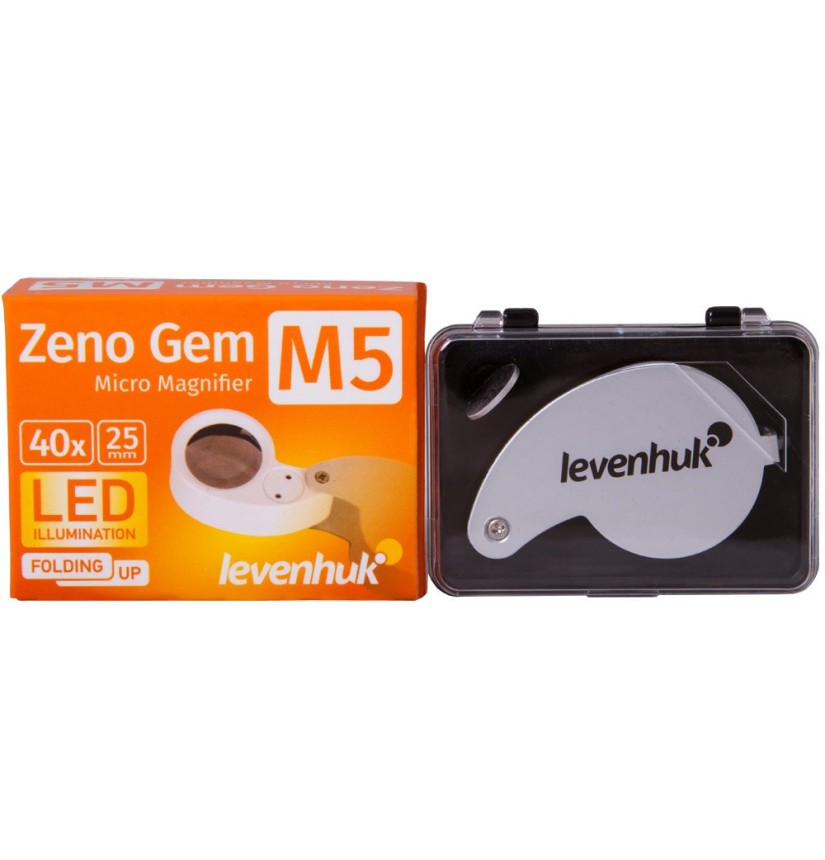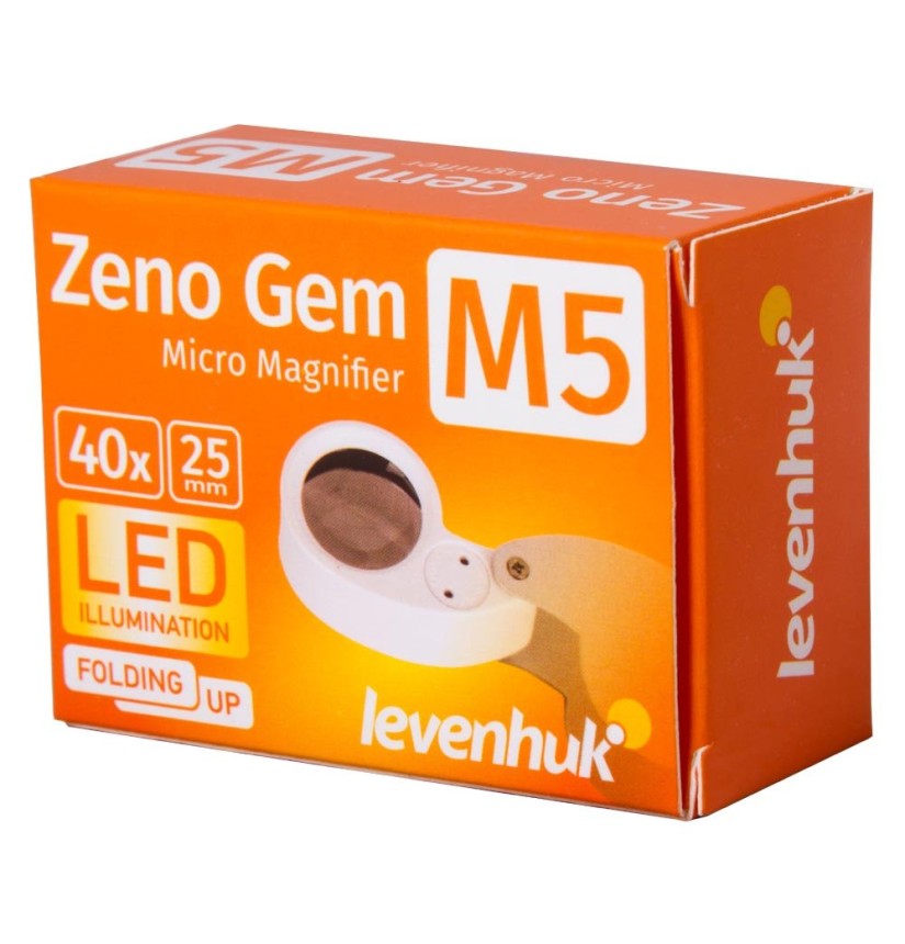 La lente d’ingrandimento compatta Levenhuk Zeno Gem M5 è uno strumento ottico potente per un uso giornaliero. Questo dispositivo offre un ingrandimento di 40x e consente di esaminare il più piccolo danno di qualsiasi tipo di superficie, leggere carattere piccoli o controllare i dettagli delle foto. Questa lente sarà utile a casa o in viaggio – potete portare questo strumento leggero e compatto sempre con voi.
