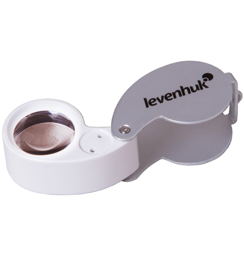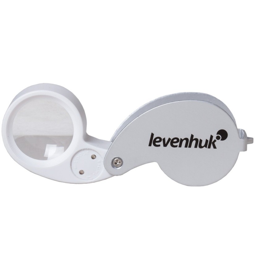 La lente ha un’illuminazione integrata: due diodi luminosi sono posti accanto alla lente e illuminano uniformemente l’area di lavoro. La costruzione pieghevole protegge la lente nei lunghi viaggi.