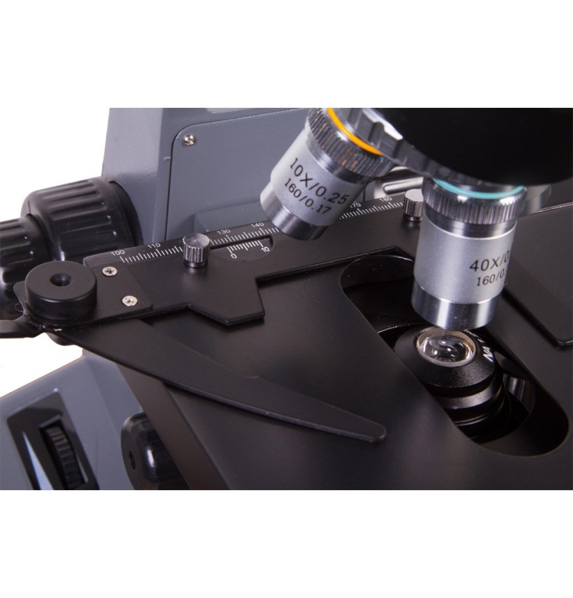 I campioni sono fissati al tavolino grazie all’uso di due pratiche mollette in metallo. Il tavolino stesso si muove in orizzontale e in verticale, consentendo di determinare accuratamente l’area di lavoro e di concentrarsi su una piccola parte del campione. Il meccanismo di messa a fuoco consente di regolare la nitidezza in modo grossolano e fine. La maggior parte dei microscopi ad uso amatoriale non possiedono questa utile caratteristica.