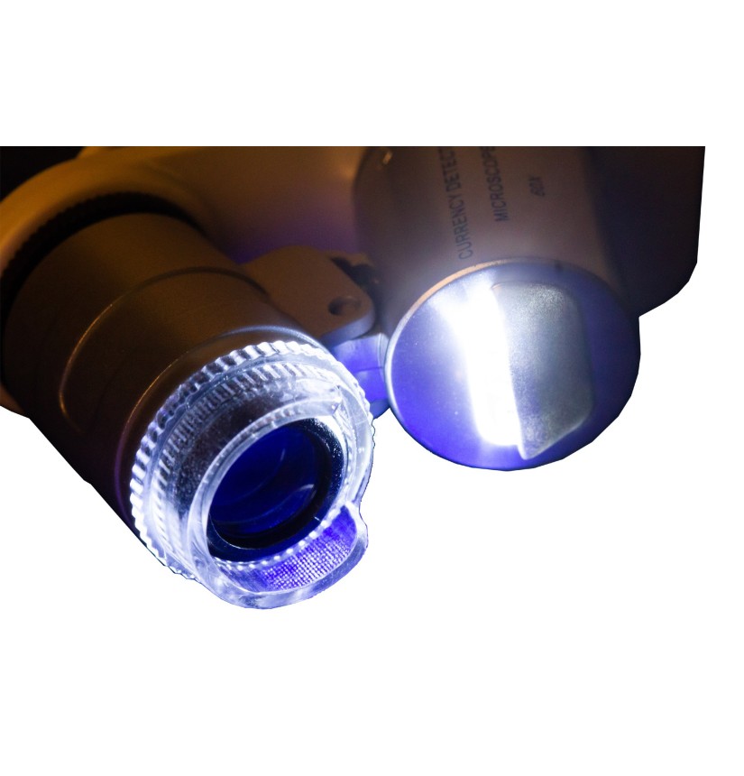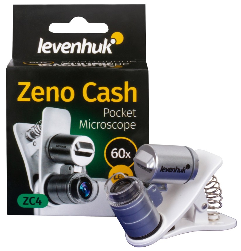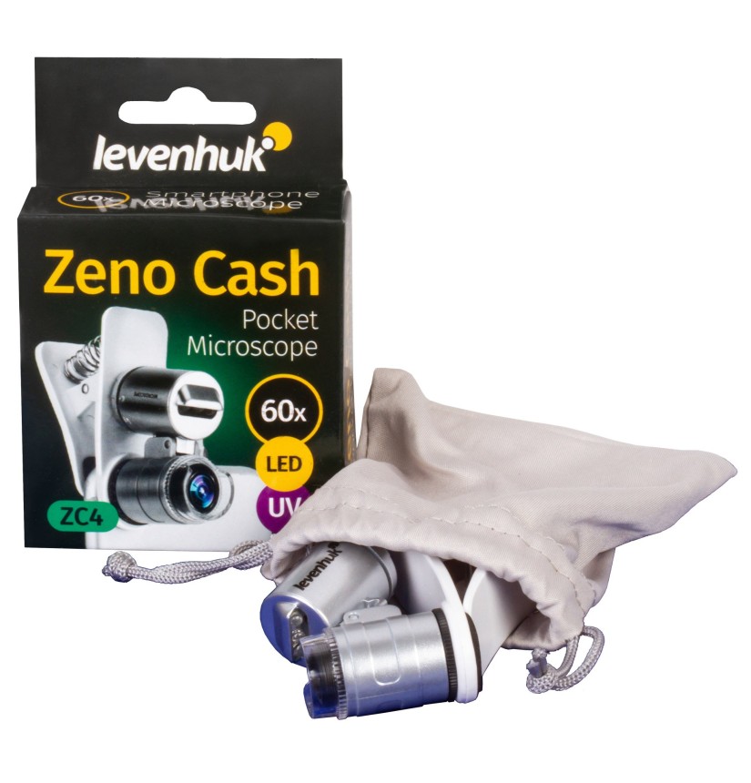 Il microscopio tascabile Levenhuk Zeno Cash ZC4 è uno strumento di ingrandimento con luce integrata. Grazie alla sua luce, può essere usato per verificare le banconote. Questo microscopio è compatto e leggero; potete facilmente portarlo con voi a riunioni con partner d’affari o in lunghi viaggi all’estero. È utile nei mercati o nei supermercati: potete controllare ogni banconota che possedete.