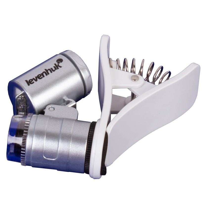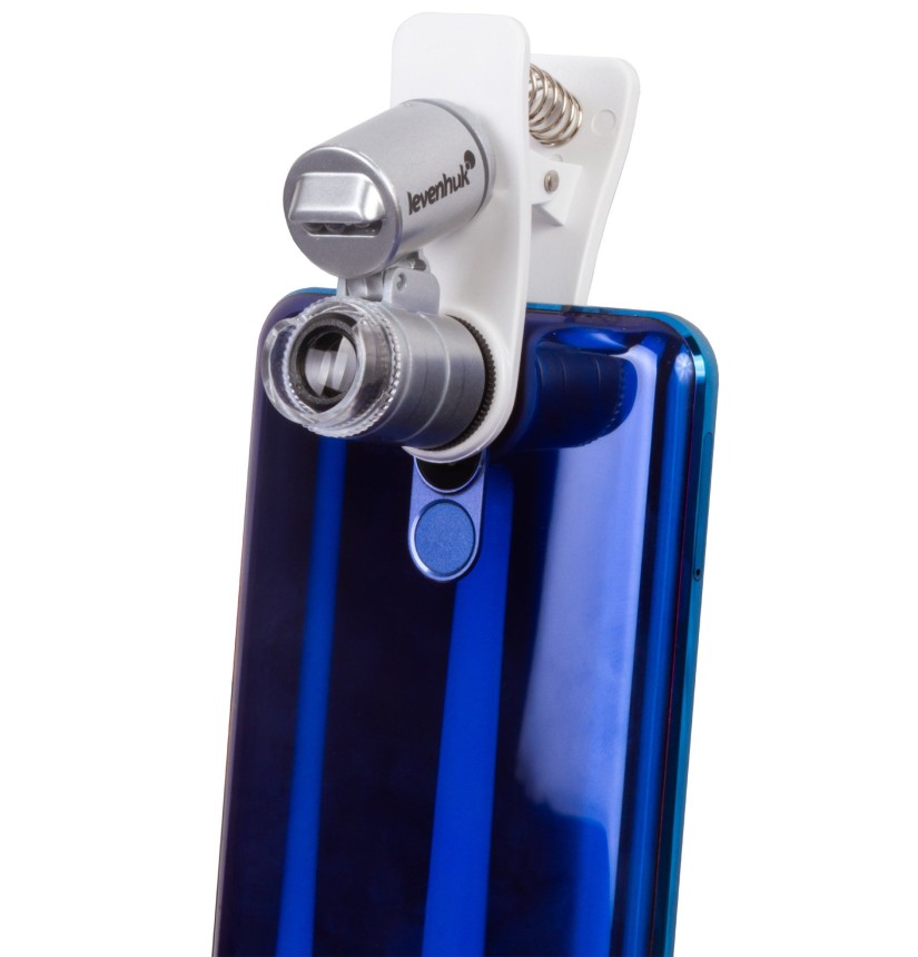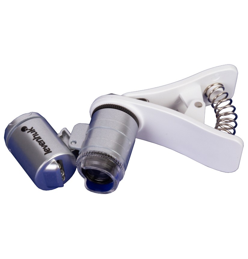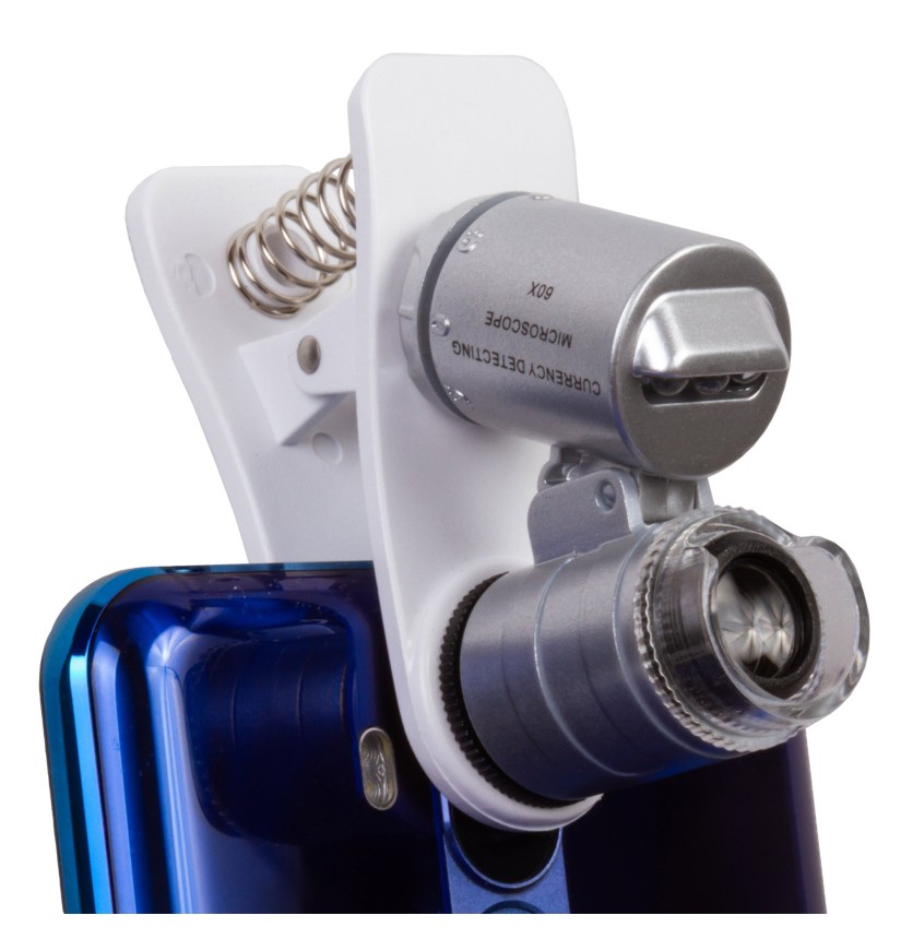 • Microscopio tascabile con una levetta per il fissaggio a un dispositivo mobile