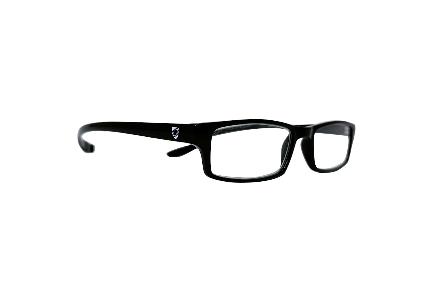 Occhiali Premontati da Lettura nero, con dettaglio dello stemma sull'asta, disponibile con potere da +1.00 a +3.50.