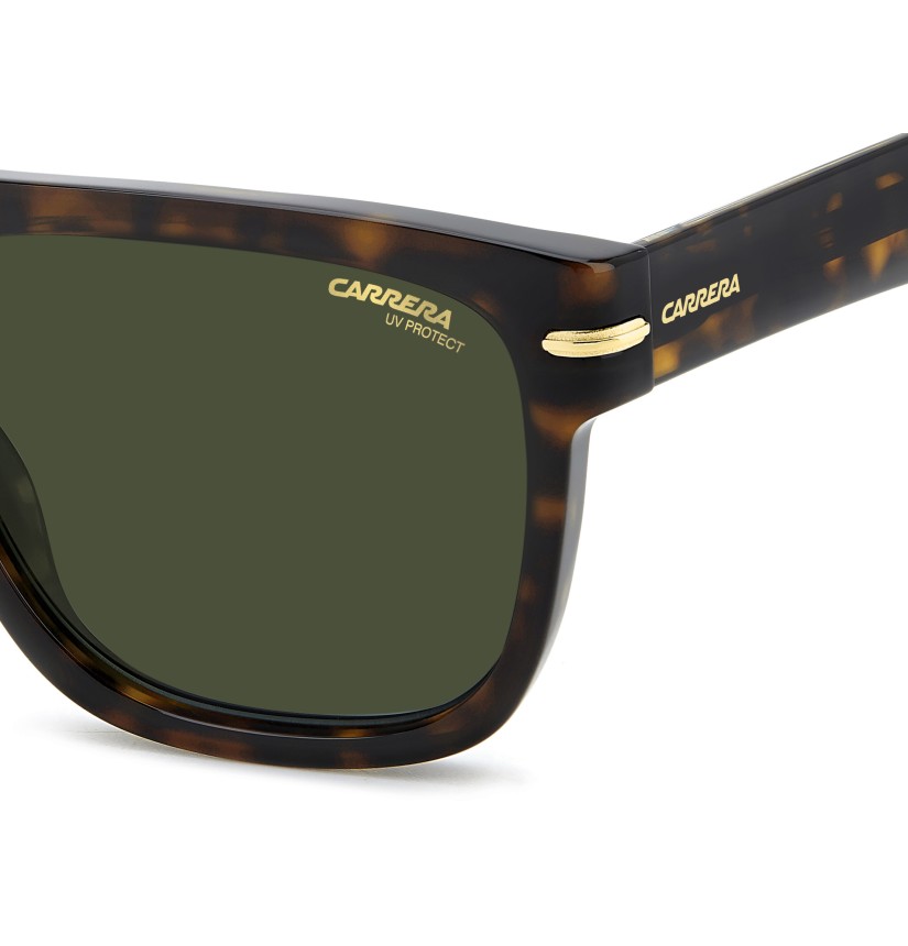 Clean lines and a silhouette that’s anything but boring define these Made-in-Italy optical glasses by Carrera. The acetate structure is enhanced by refined details, a demonstration of the brand's attention to quality. The rectangular frames are flat along the top, while the sculpted temples add character: the metal plaque with the full logo is decisive and immediately recognisable. Glasses to wear from morning to evening, for unmistakable style.
