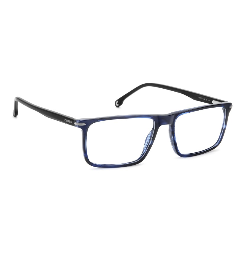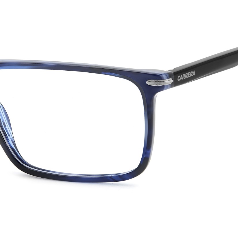 Carrera has focused on practical style for these rectangular eyeglasses. They’re easy to wear from morning to evening thanks to their construction in high-density acetate, allowing for exceptionally thin and light proportions. The flexible hinges and the ability to choose between two different lens sizes offer the comfort of a perfect fit. The selection of hues? Neutral palettes carry the day, including an option with multi-layer temples in the Carrera colours.
