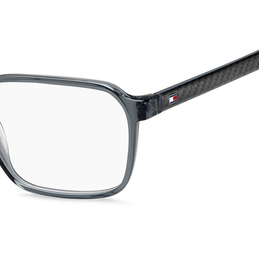 TOMMY HILFIGER eyeglasses with technical qualities, starting with the temples with inserts in carbon fibre, a lightweight and highly durable material. The hinges are flexible, the end tips are rubber-coated and the frames come in two sizes. The result? Unrivalled comfort. As an aesthetic note, the Polo Pique texture inspired by the brand's polo shirts is accompanied by the TOMMY HILFIGER flag and a reserved, masculine colour palette.