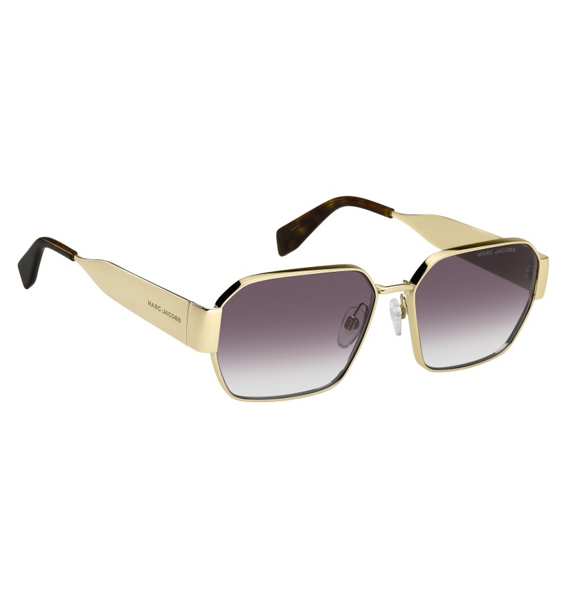 An ode to contemporary elegance, these women's sunglasses perfectly fuse functionality and style. Seemingly minimalist from the front, the sleek metal design reveals the laser-etched Marc Jacobs logo along the top bar and ultra-bold wide temples engraved with the brand's signature, creating a striking impression. Finished with acetate end tips, adjustable nose pads and logo lettering on the left lens, the discreet metallic colourways ooze urban glamour.