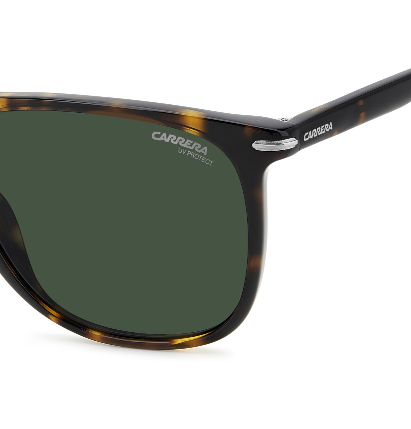 Carrera looks to the past to create timeless sunglasses. The vintage look of this pair is created by the square frames, slightly flat along the top, which are very traditional and very Carrera. It’s updated by metal details which embrace the front and continue to the temples, inspired by the famous Carrera ‘C’. The colour palette is neutral and includes multi-layer versions in the brand’s signature colours. Those who seek added protection can choose the polarized version.