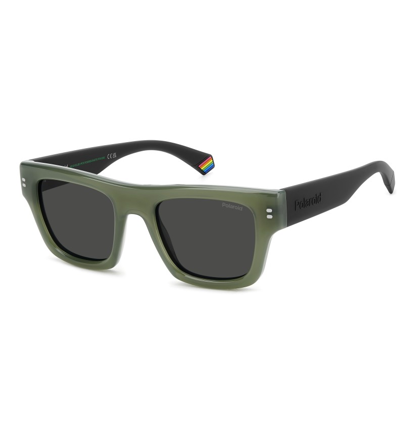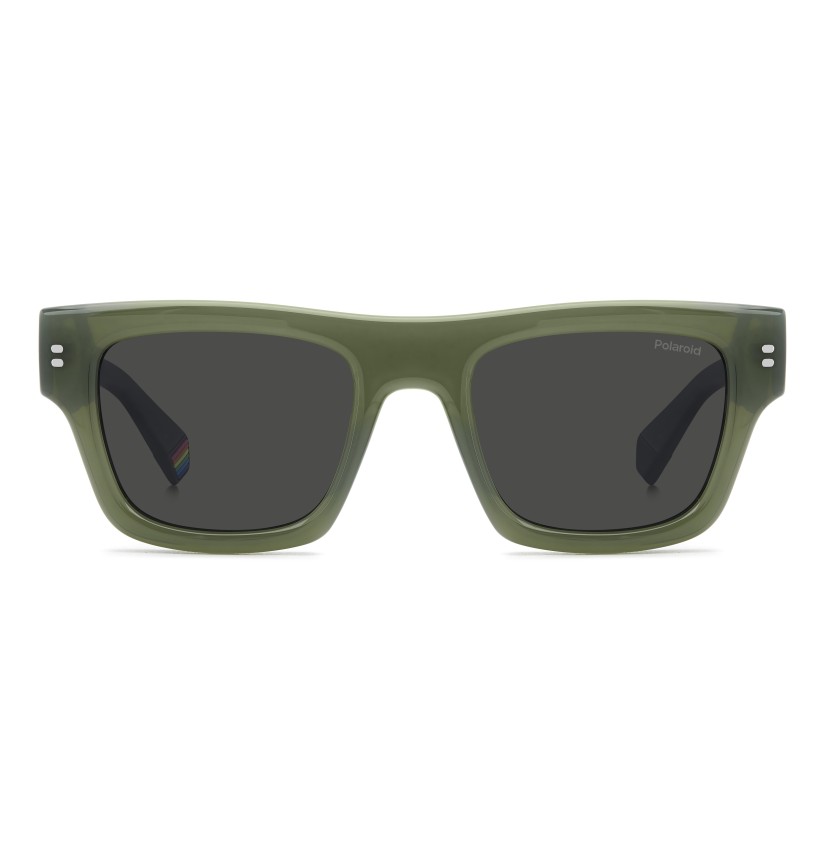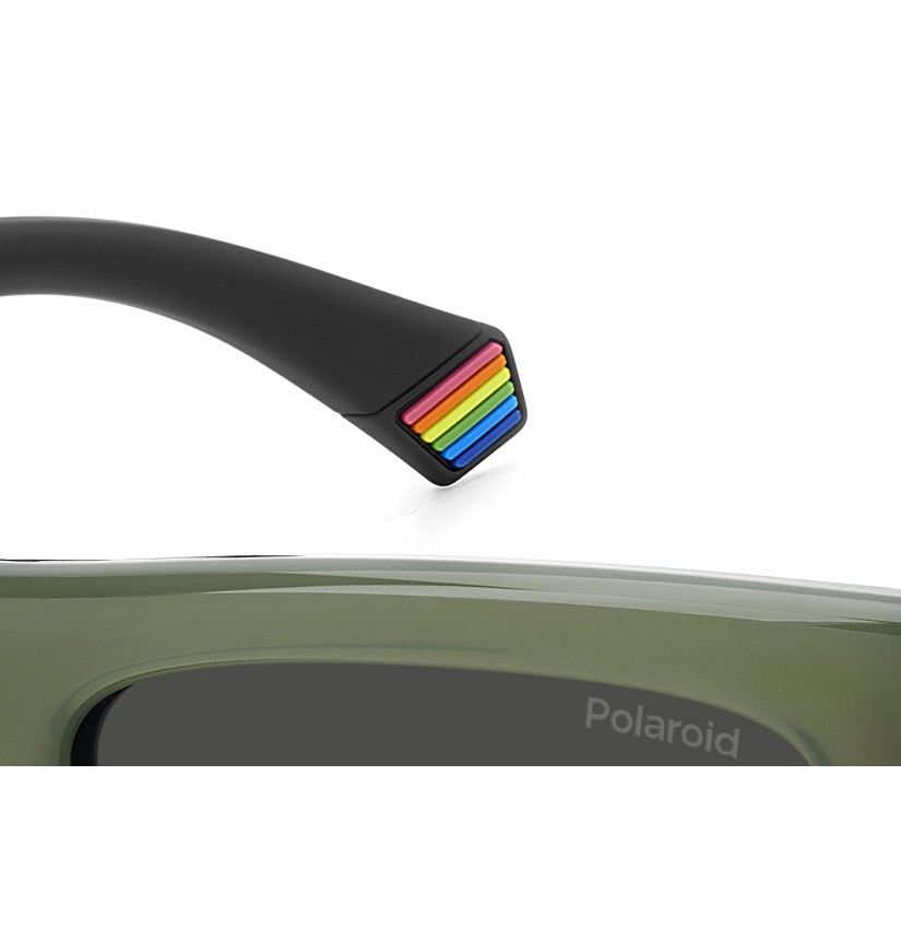 Wearing these Polaroid sunglasses for men will be a pleasure thanks to the temples coated in soft rubber: they’re irresistible to the touch and comfortable to wear. Flat along the top, the square frames are an ever-popular style, here expanded in their proportions and with multifaceted surfaces. Brand details abound: rivets inspired by the logo, ‘Polaroid’ in raised letters, and a rainbow on the end tip. Customize them with prescription lenses and you’ll never want to take them off.