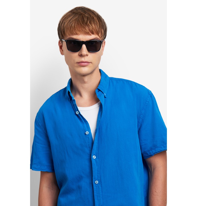 These Polaroid sunglasses for men are always impeccable: their secret lies in the mix of slender lines and cool details. The front is rectangular, decorated by rivets inspired by the new Polaroid logo. The temples are slim and light weight. The rainbow on the end tip is an unexpected detail. In classic colours and on-trend hues, these frames are impeccable even when hooked onto a jumper or t-shirt as a finishing touch.