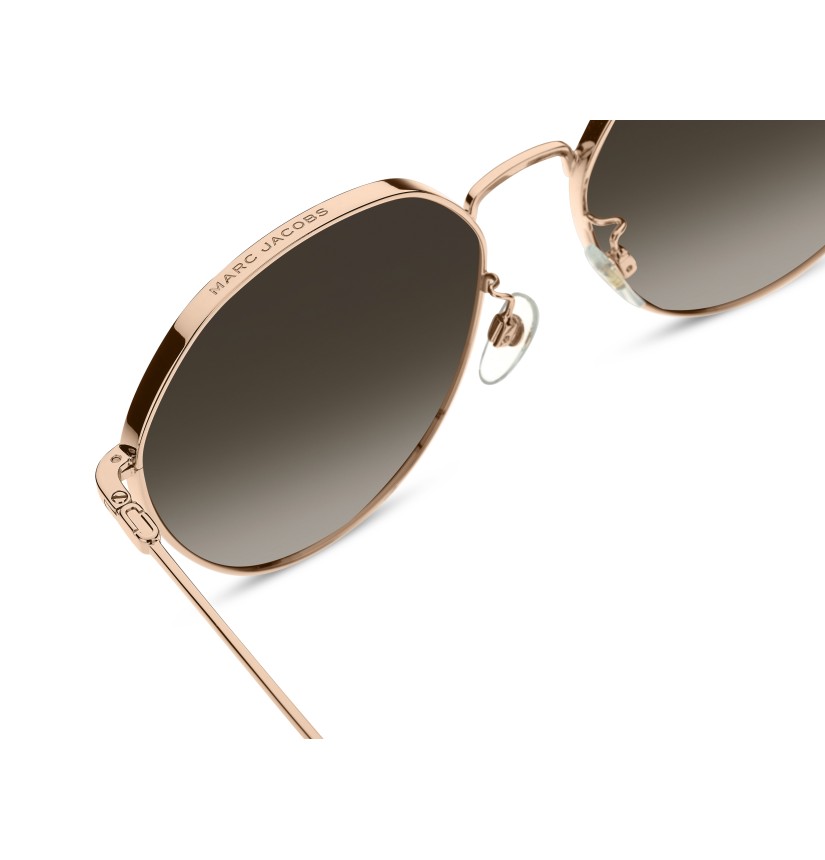 An ode to contemporary elegance, these women's sunglasses perfectly fuse functionality and style. Seemingly minimalist from the front, the sleek metal design reveals unexpected details when seen from the top – the laser-engraved Marc Jacobs logo and J Marc motif in high relief – creating a striking impression. Finished with acetate end tips, adjustable nose pads and logo lettering on the left lens, the discreet metallic colourways ooze urban glamour.