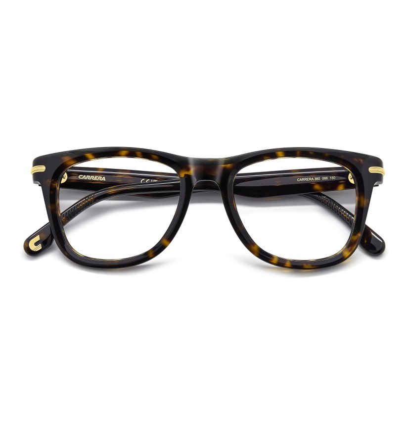 Carrera is known for taking risks, and these acetate eyeglasses are no exception. Bold and charismatic, the front is elevated by embossed metal details in the form of the iconic 'C'. Comfort is always a priority and a top-down view reveals their unexpectedly thin design, for a lightweight feel. Some versions have a visible wire core on the inside, others have a multilayer front in Carrera hues.