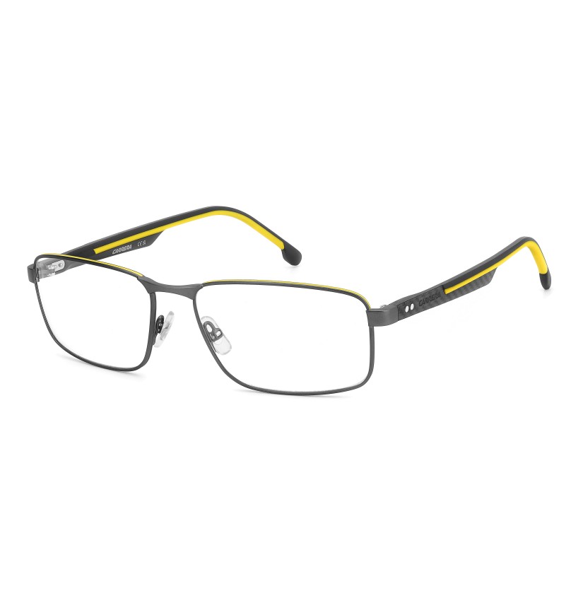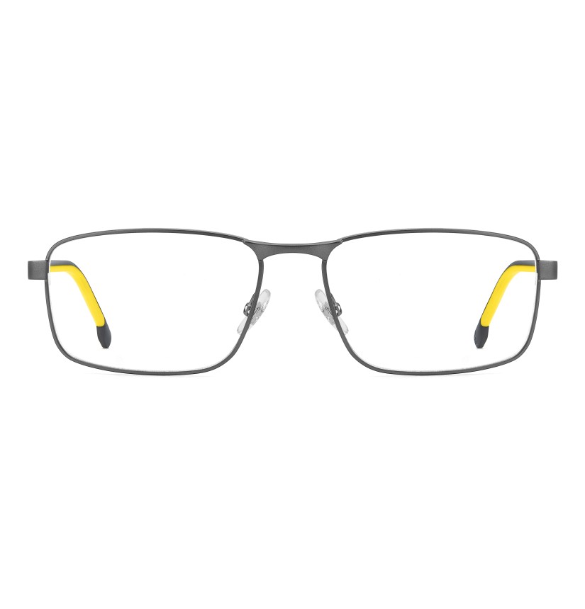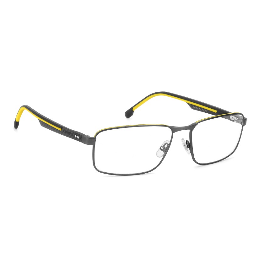 Carrera has chosen carbon fibre for these premium eyeglasses, using this lightweight and durable material for the slender temples and giving it a textural surface. The rubber-coated end tips increase their comfort, in contrast or tone-on-tone colours. With rectangular frames in lightweight stainless steel and adjustable nose pads, you’ll be sure to stay focused on the objectives on the horizon. For concrete style that’s without frills and distractions.