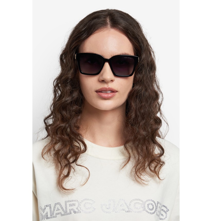 A sophisticated new take on Marc Jacobs' iconic themes, these women's sunglasses combine soft lines and ultra-sharp angles to stunning effect. Entirely crafted from acetate, it's the unmistakable finishing touches that amp up their fashion credentials: notice the round metal J Marc trims, the hot-stamped logo on the temples and the laser-etched signature on the left lens. The colour palette beautifully harmonises timeless and contemporary tones.