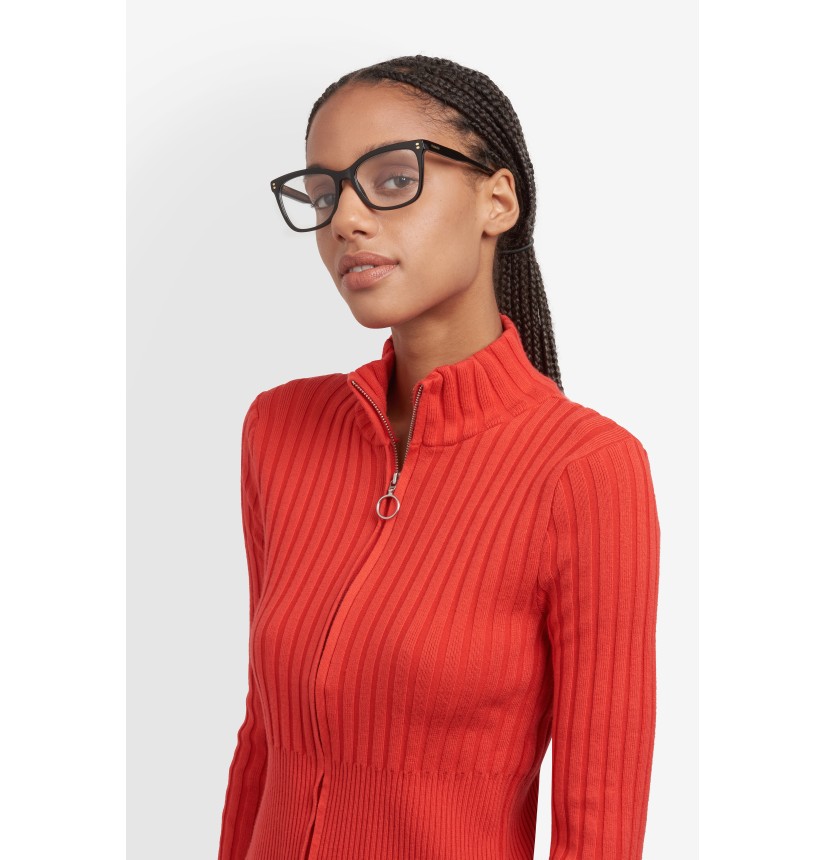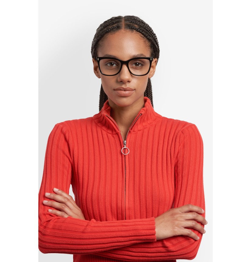 These women's eyeglasses by Polaroid are a flawless classic that goes seamlessly with any outfit. Crafted in eco-acetate, they’re elegant in their simplicity, with front rivets inspired by the Polaroid logo. Flexible hinges ensure an impeccable fit. The personality of this style comes through in the colour palette, including in the version with a multi-layer front and the one with clear temples in which the wire core is visible. For get-noticed style that’s truly effortless.