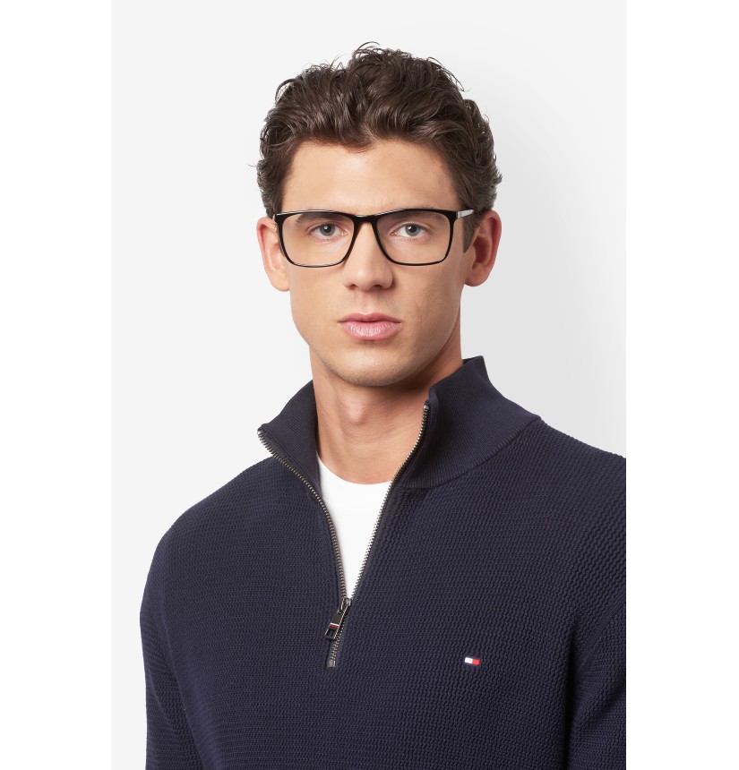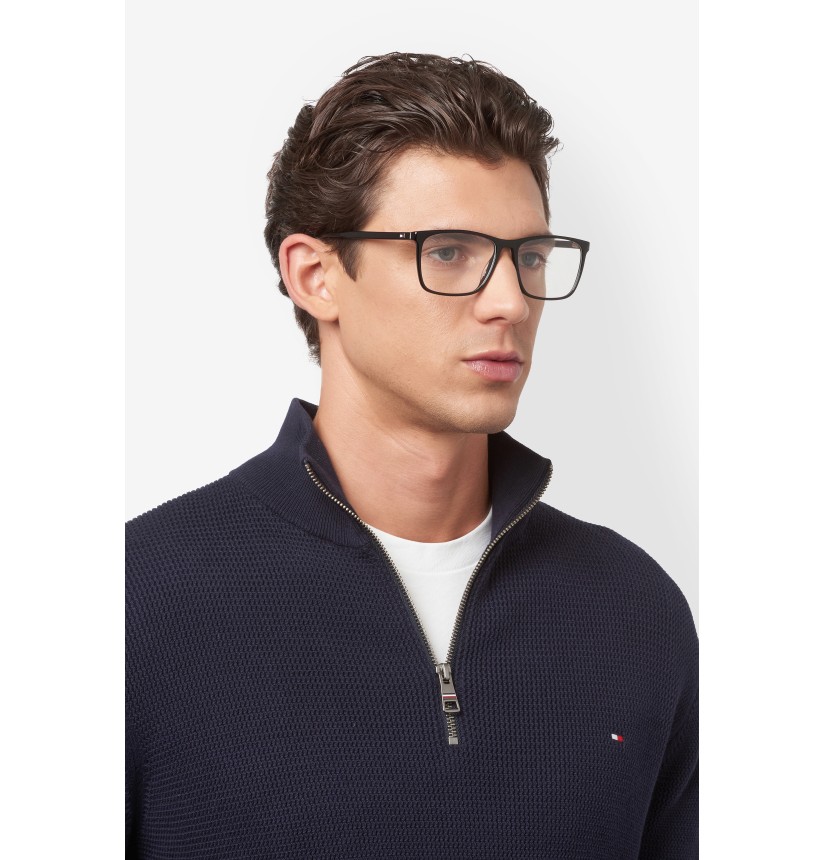 Inspired by classic American style, these TOMMY HILFIGER eyeglasses ensure a clean look. In high-density renewed acetate, their slender silhouette is easy to style and wear. The slim structure is enriched by metal hinges where the temples meet the front, a detail that’s aesthetically pleasing and increases the durability of the glasses. The brand's flag is seen on the temples and echoed in the ribbon on the end tip.