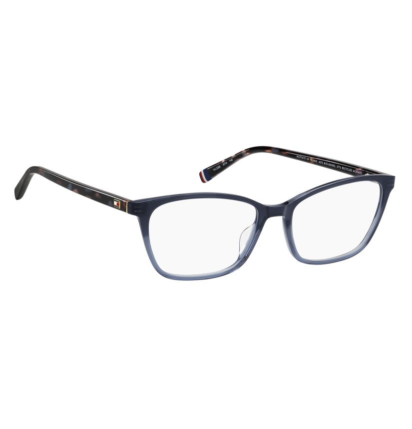 Essential and elegant TOMMY HILFIGER eyeglasses: this timeless style is characterised by slender lines in high-density renewed acetate. The temples feature decorative, flexible hinges where the temple meets the front for a greater resistance. The TOMMY HILFIGER flag is a subtle yet recognisable symbol of the brand. The result is an accessory that’s easy to wear, easy to style and designed for an optimal fit.