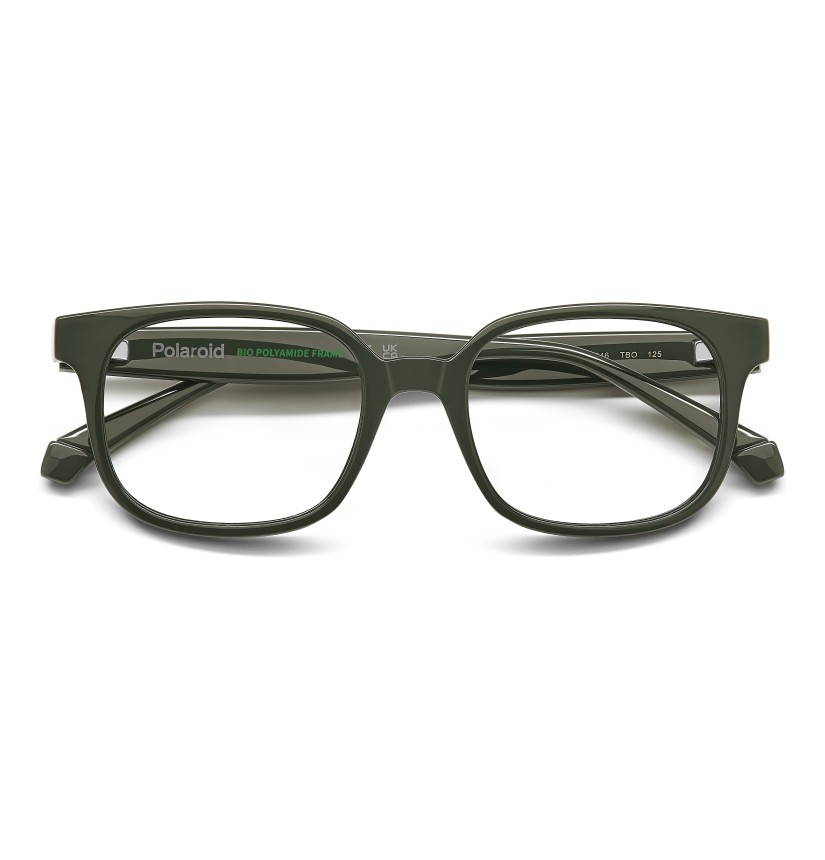Fun and functional, these optical glasses are designed for boys and girls from 4 to 6 years old. Their square frames and essential lines add a fresh touch to everyday outfits. For an approach to fashion that’s responsible and sustainable, they’ve been crafted in eco-polyamide. The Polaroid logo is printed on the temples, while the colour options range from classic black to brighter hues, all of them perfect.