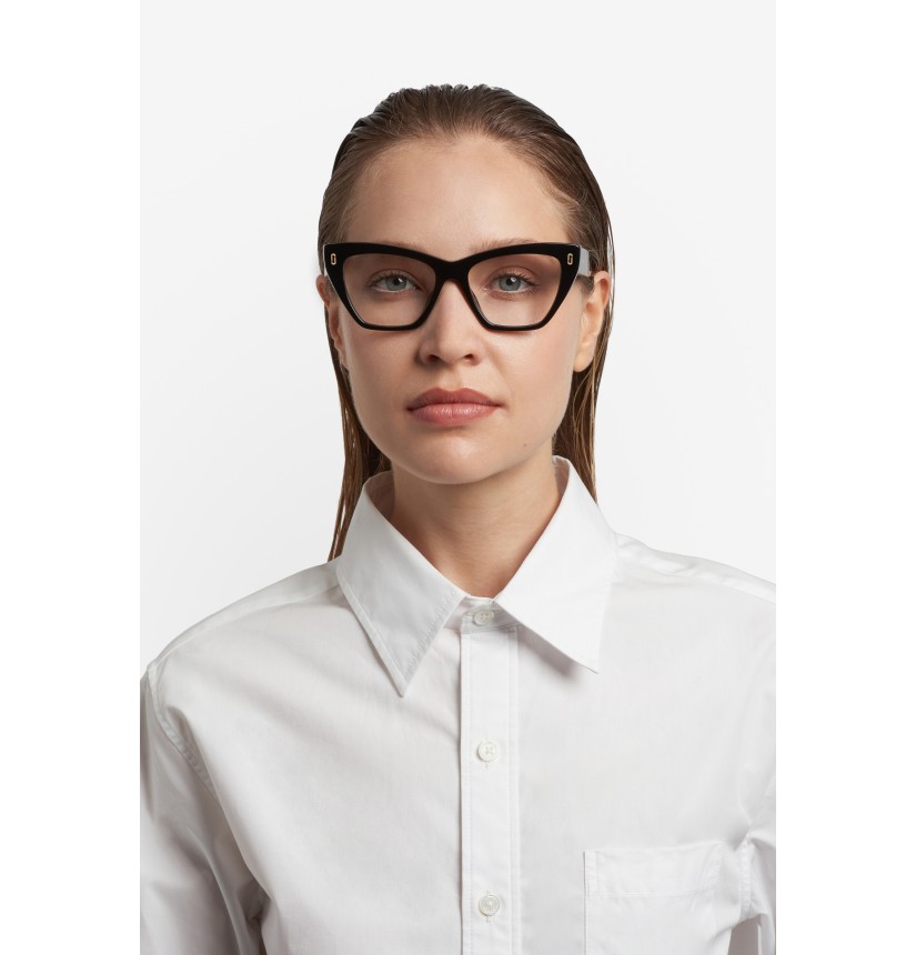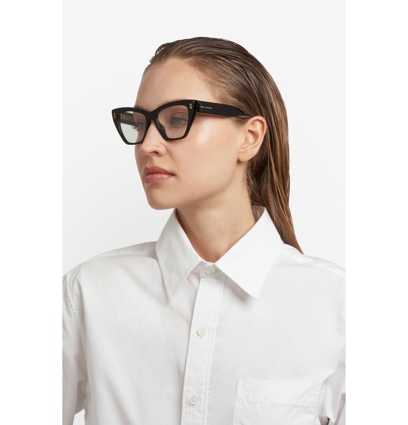 An elegant new take on the J Marc premium eyewear edit, these women's optical glasses express bold femininity via geometric lines and iconic details. Entirely crafted from acetate, they are elevated to statement status by the unmistakable engraved JJ motif on the front and glistening lettering logo along the temple. Selected styles reveal the metal wirecore engraved with the Marc Jacobs monogram inside the double-layer temples.