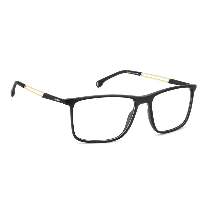 These Carrera eyeglasses combine practicality, high-tech details and clean lines. Made for everyday wear, their design focuses on lightness and ease of use. The stainless steel temples feature a cut-out tubular shape to keep weight minimal. Pops of colour add a sporty touch. Two sizes are available to ensure the perfect fit.