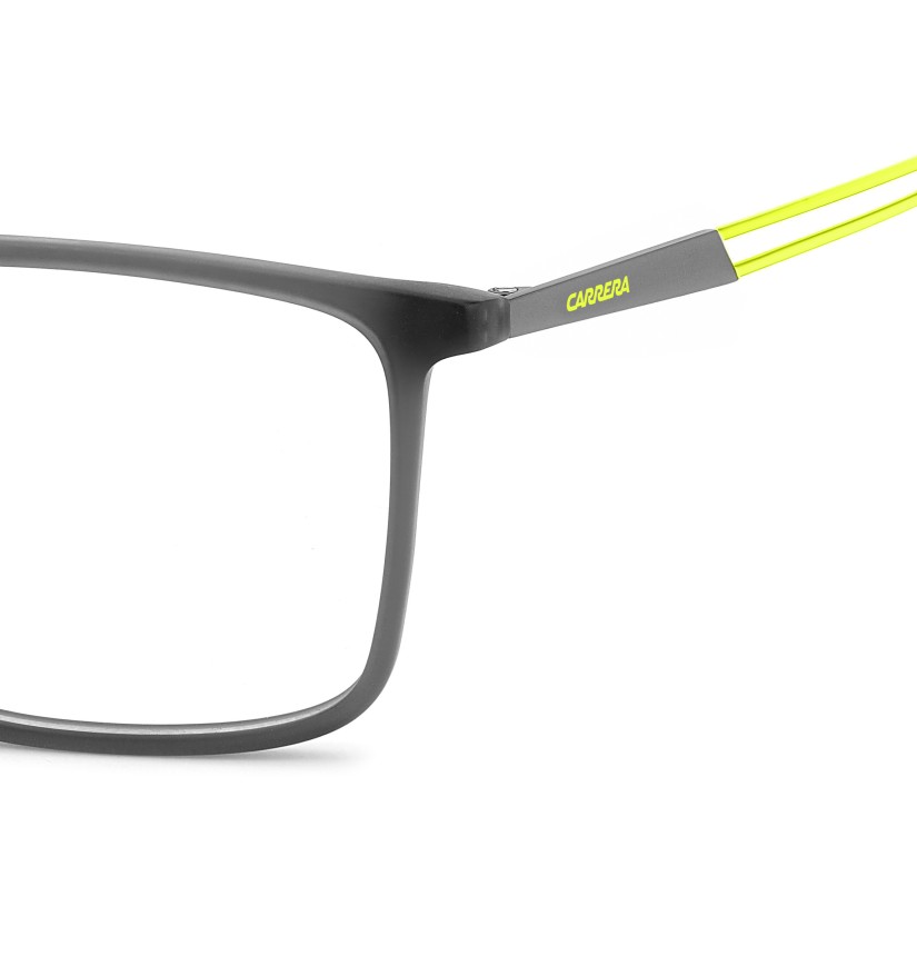 These Carrera eyeglasses combine practicality, high-tech details and clean lines. Made for everyday wear, their design focuses on lightness and ease of use. The stainless steel temples feature a cut-out tubular shape to keep weight minimal. Pops of colour add a sporty touch. Two sizes are available to ensure the perfect fit.